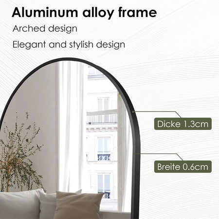 - Arched Full Length Mirror, 150x50 cm, with aluminium frame