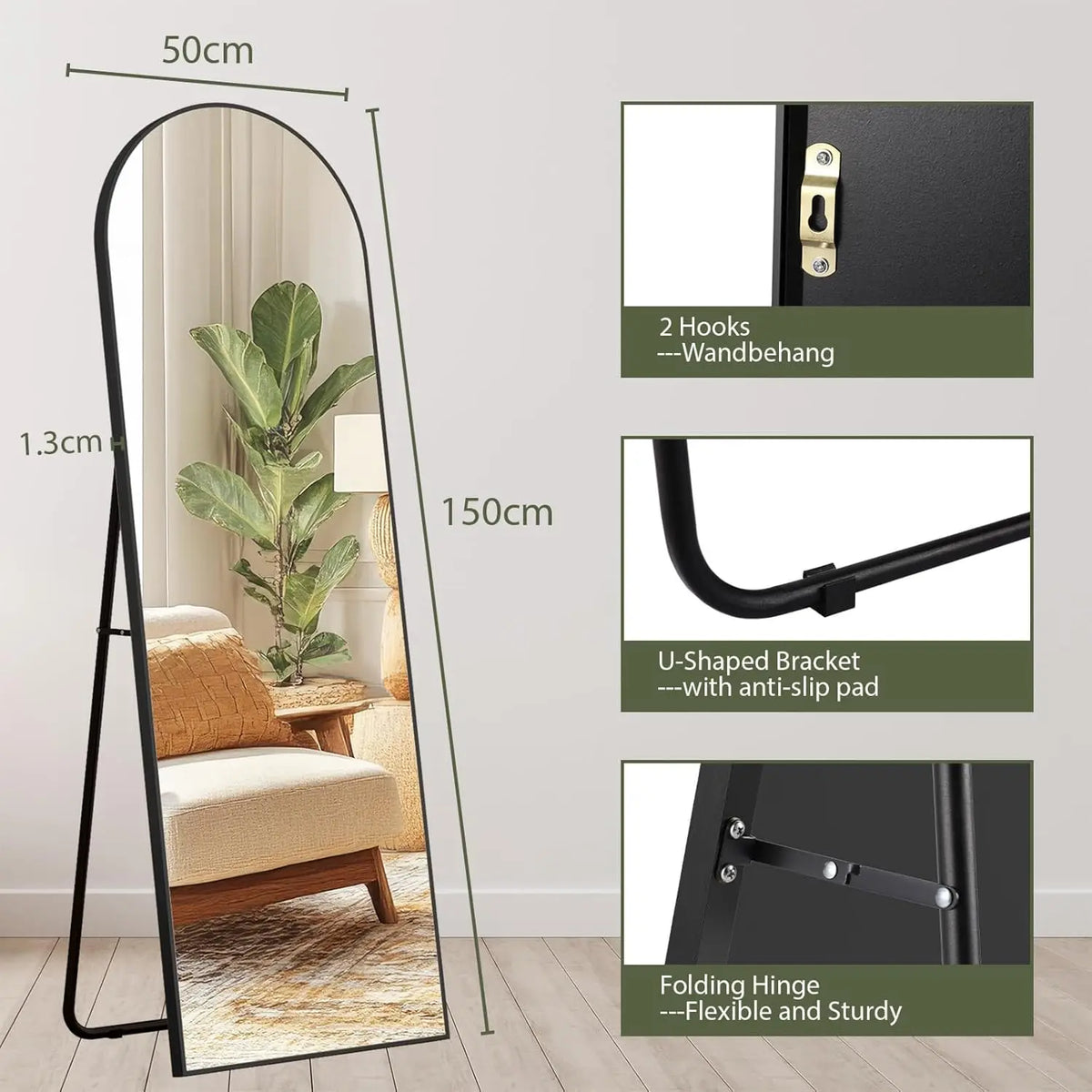 Arched Full Length Mirror 150x50cm With Aluminium Frame