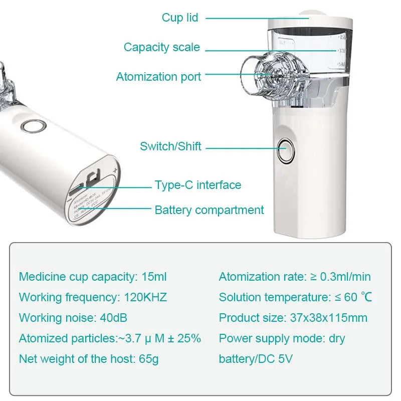 - 1 x Portable Ultrasonic Mesh Nebulizer
