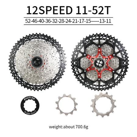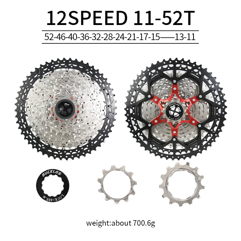 - 1 x Bucklos 11-52T MTB Cassette for HG Hub (10/11/12-Speed)