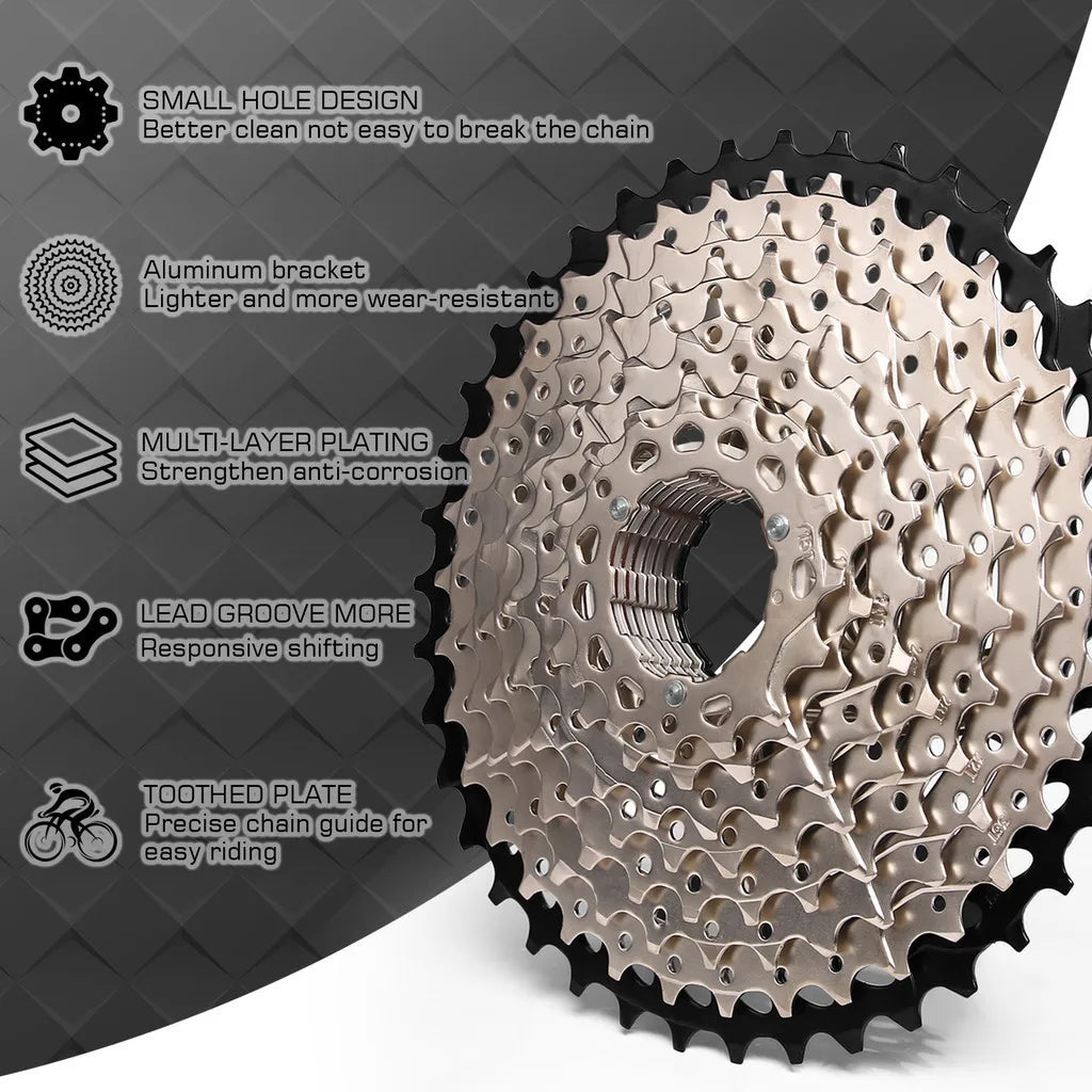Meet the BUCKLOS Bike Cassette 8-9 Speed, Steel Freewheel for HG Hub — a rugged, reliable choice for MTB riders who demand durability and smooth performance. Crafted from steel, this freewheel resists wear and grit, helping you ride with confidence on challenging trails and long journeys. Designed for 8-9 speed drivetrains and HG hubs, it delivers dependable shifts that keep you pedaling smoothly even when the terrain gets tough.