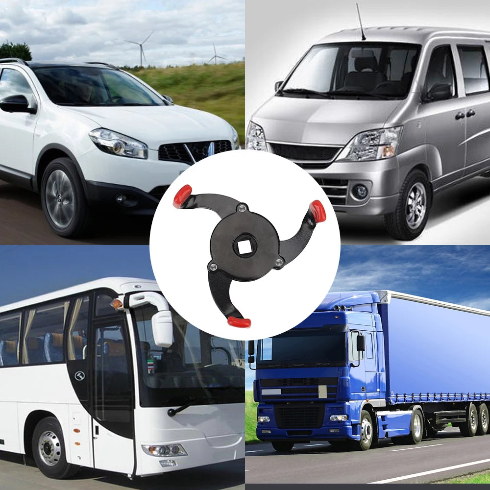 The 3-jaw anti-drop wrench securely grips oil filters, allowing you to remove them quickly and with minimal effort. As you apply torque, the claws tighten for a firmer hold, making it especially effective on tight or stubborn filters. Its universal adjustable design fits many manufacturers and models, including Toyota, Honda, BMW, and Audi, as well as vans, SUVs, large trucks, buses, and various diesel engines. This wrench is designed to save you time and energy during oil changes by delivering reliable performance with every use.