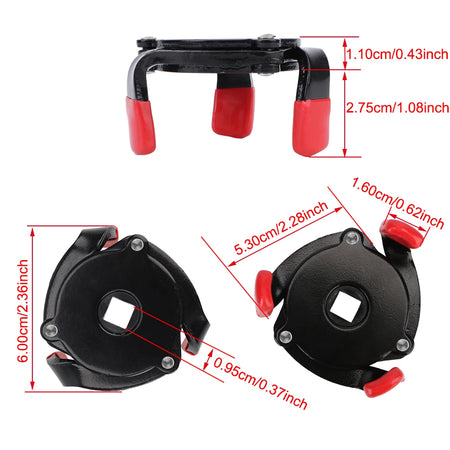 Meet the Universal Car Oil Filter Wrench with a robust 3-jaw design—built to tackle stubborn oil filters across a wide range of vehicles. Crafted from high carbon steel and finished in black and red, this tool delivers dependable torque without slipping, protecting both you and your engine during maintenance.