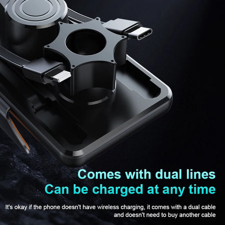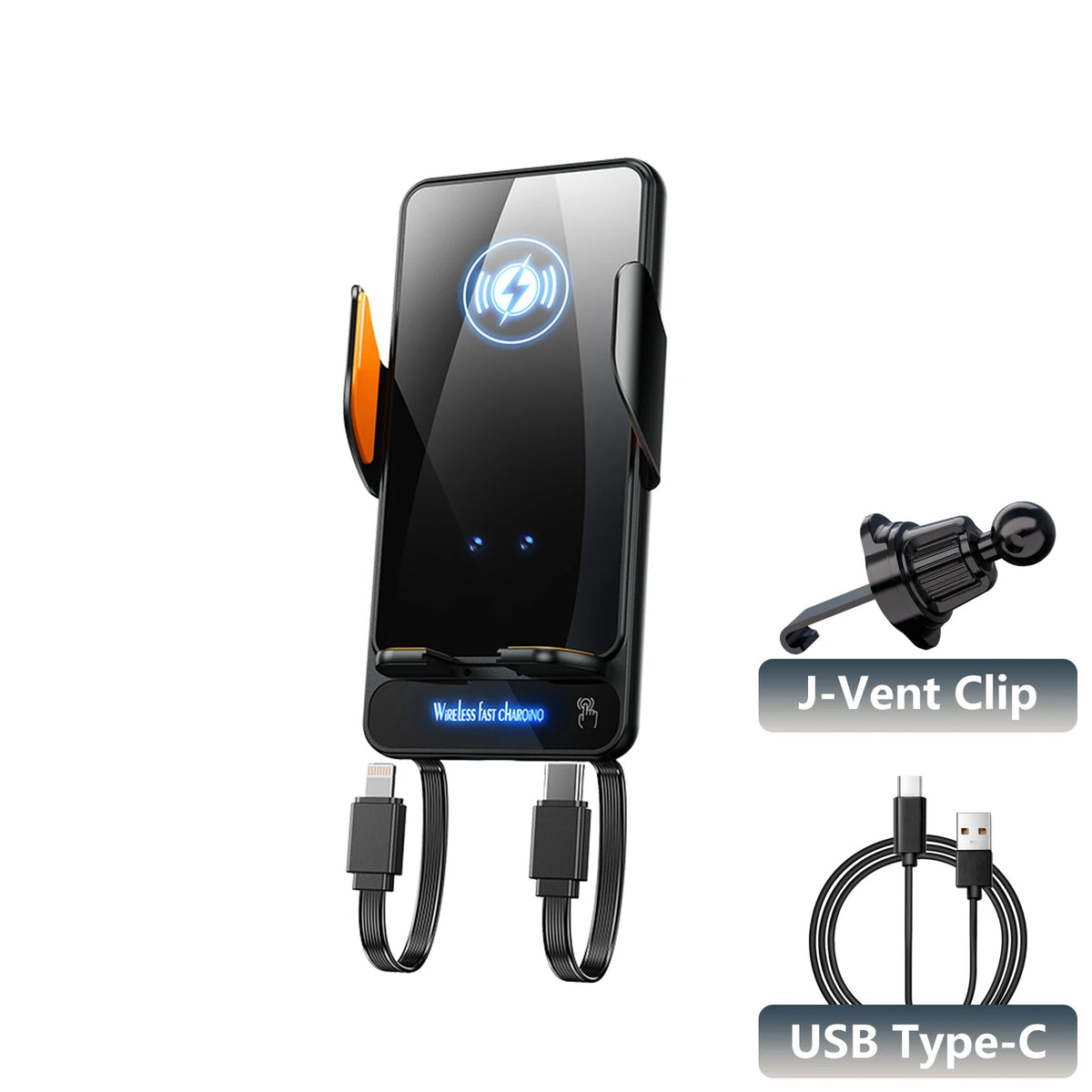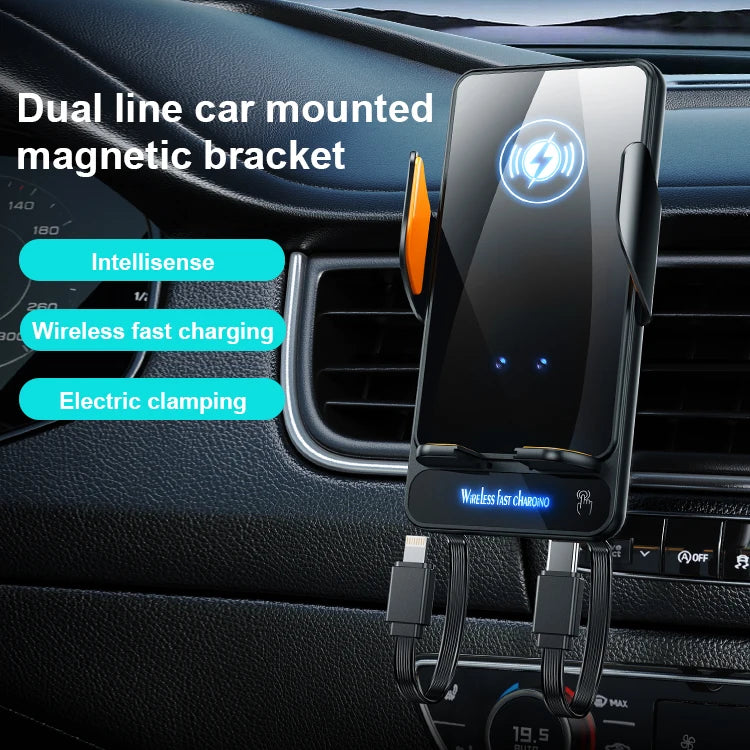 Car Phone Holder Wireless Charger Auto Clamp Dual Cables