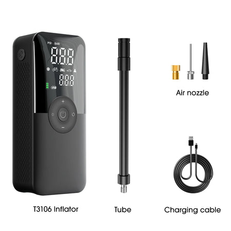 The CARSUN T3106 Rechargeable Tire Inflator is a compact, cordless air pump built for drivers who value convenience, speed, and reliability. Featuring a powerful 2600 mAh battery and a clear digital display, this portable inflator makes it easy to reach the right tire pressure on the go—whether you’re tackling car tires, motorcycles, bicycles, or even sports balls. The durable ABS housing houses a PP motor for sturdy everyday use, while the built-in LED lighting helps you inflate accurately in low-light conditions. With its wireless design, you can inflate without hunting for an outlet, making roadside repairs or family road trips simpler and safer.
