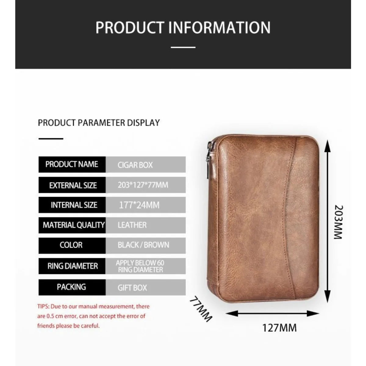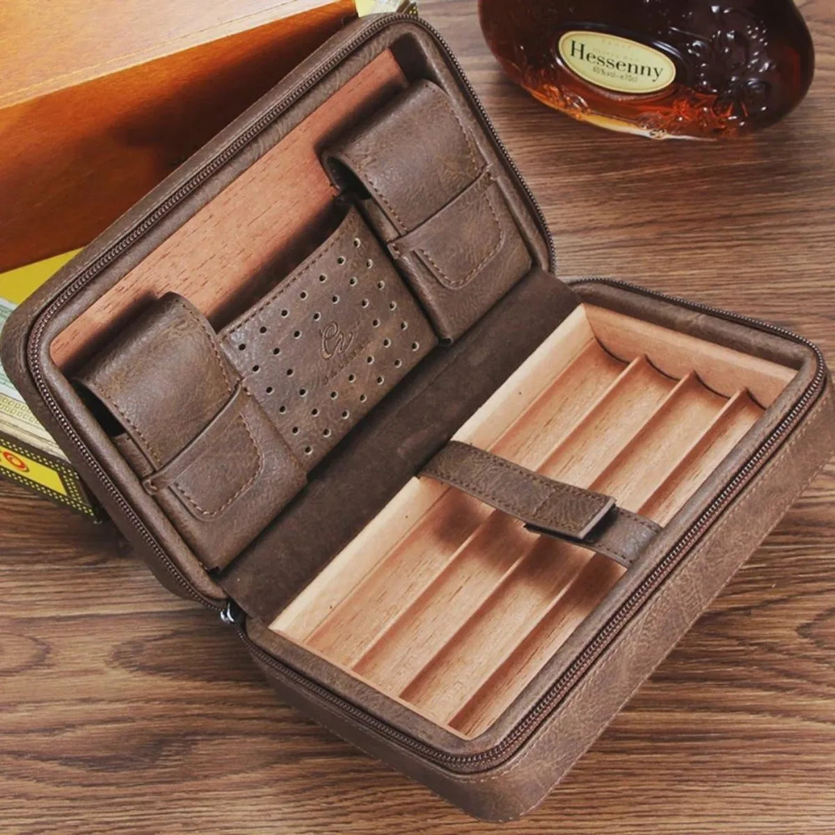 Travel Leather Cigar Humidor Box Cedar Wood 4 Cigars