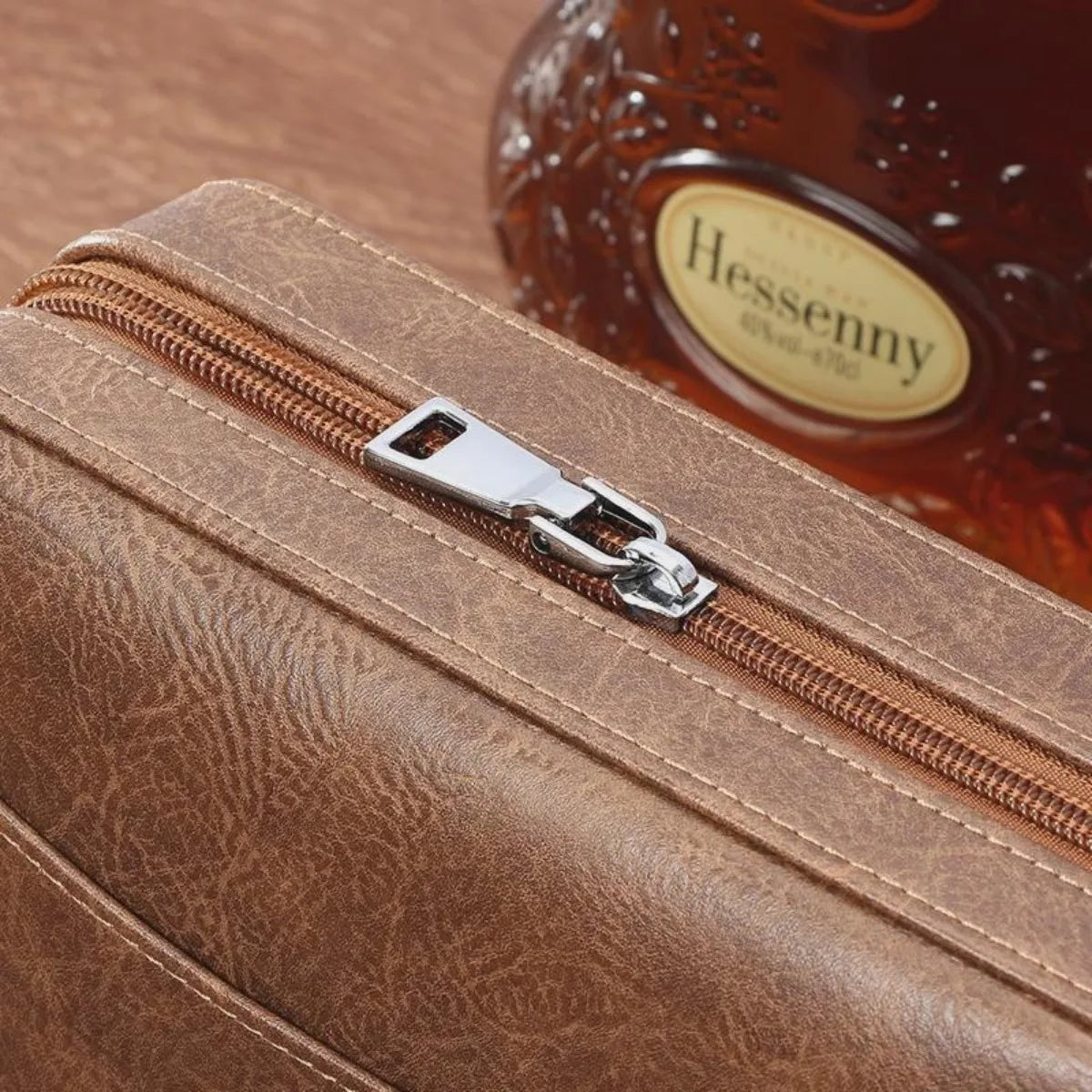 Travel Leather Cigar Humidor Box Cedar Wood 4 Cigars from Choice blends rugged practicality with refined style. Crafted from cedar wood with a protective leather exterior, this compact humidor is designed to keep up to four cigars fresh while you travel. Measuring 127 × 77 × 20 mm and finished in a sophisticated brown and black palette, it fits easily in a bag or briefcase and comes in a gift-ready package.