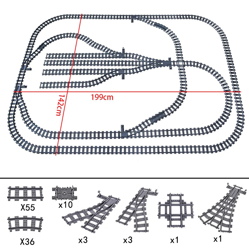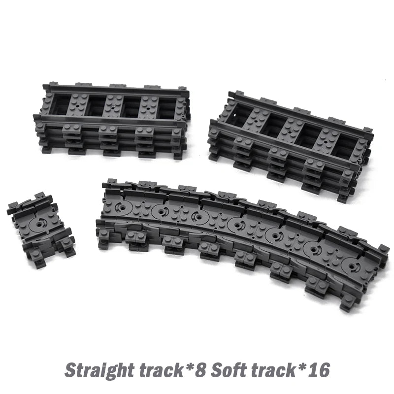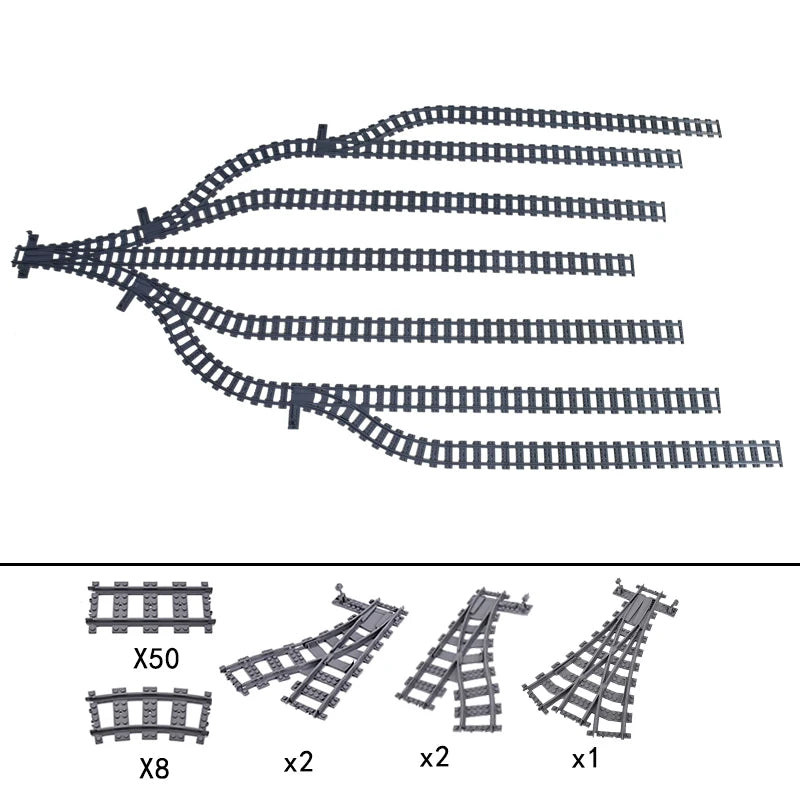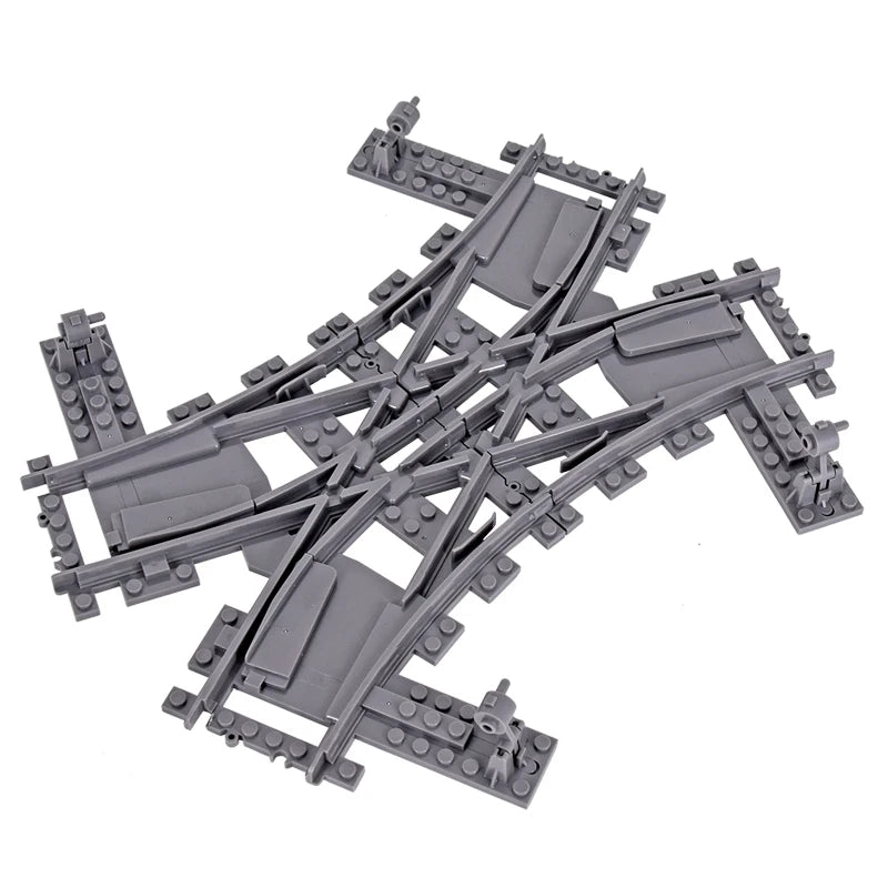 City Trains Flexible Switch Railway Tracks Rails Crossing Forked Straight Curved Building Block Bricks Toys Compatible with 7996