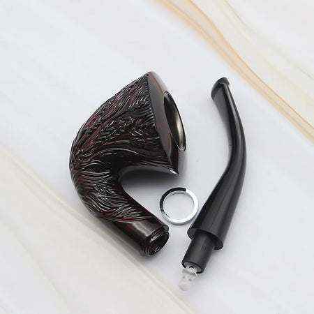 - Classic Curved Engraved Pipe With Filter Tobacco Mouthpiece