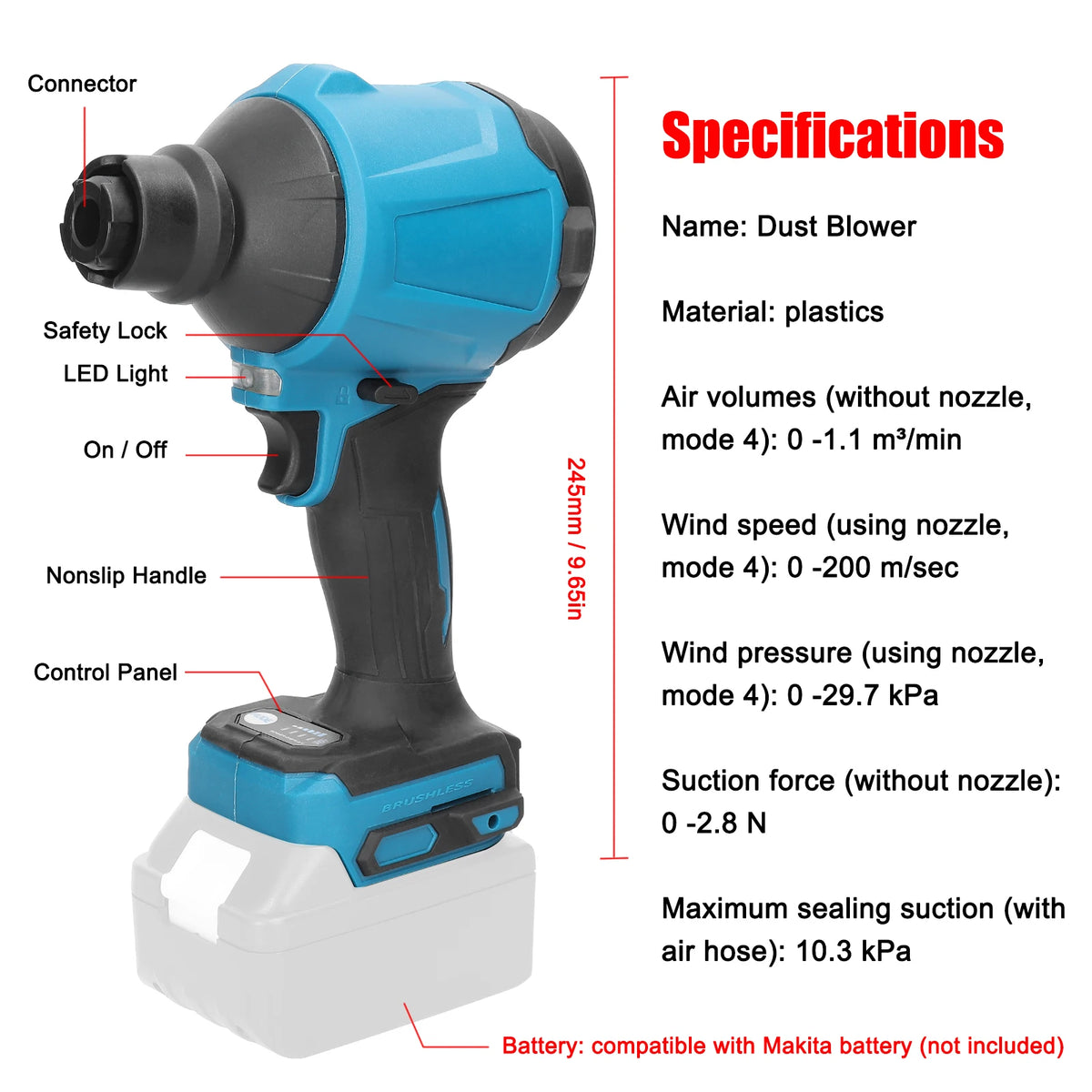 Cordless Air Dust Blower 18V For Makita Battery Stepless