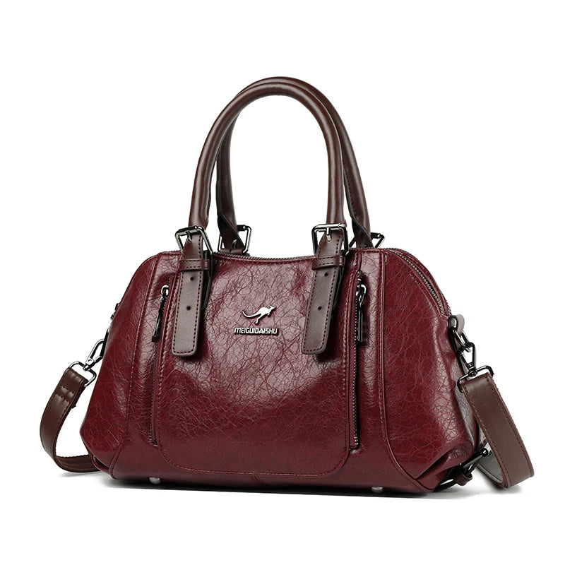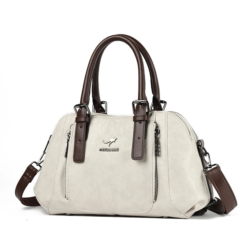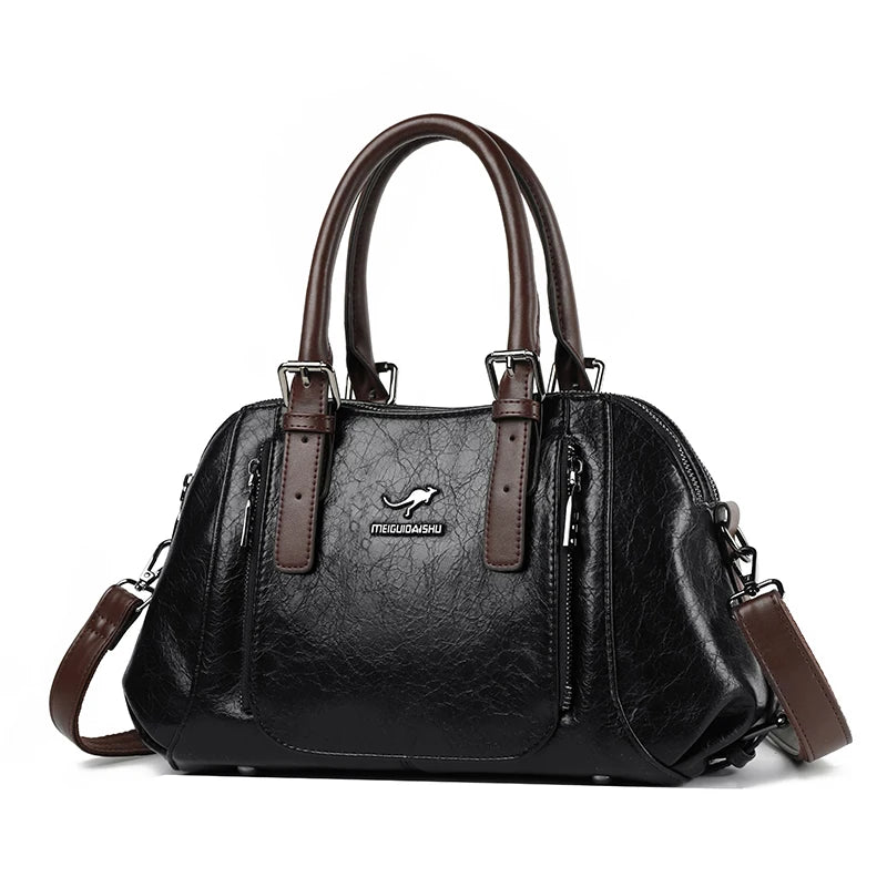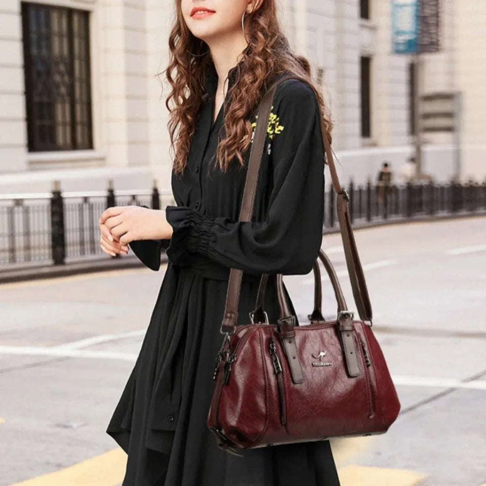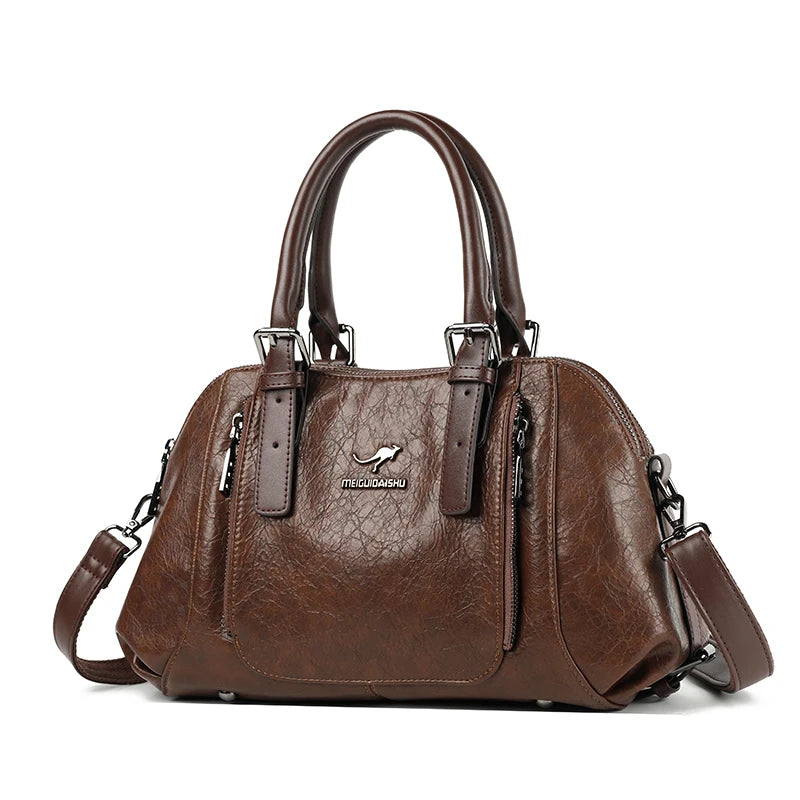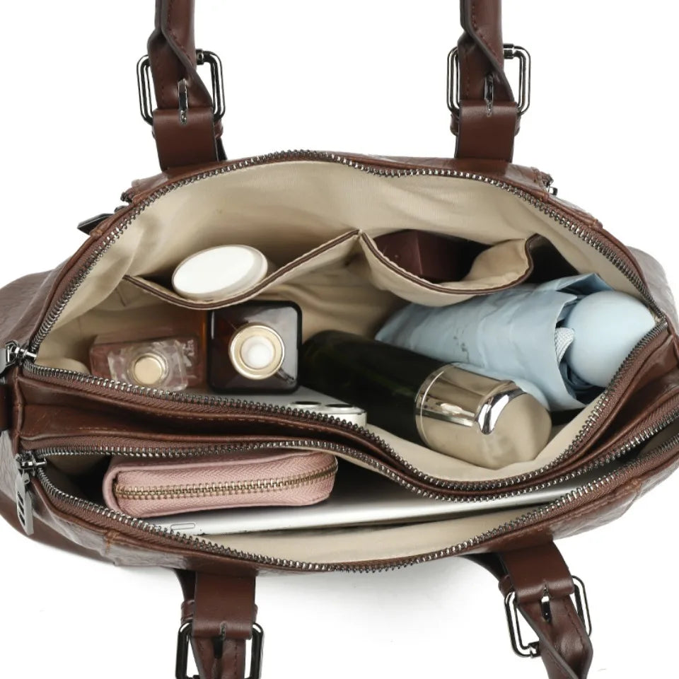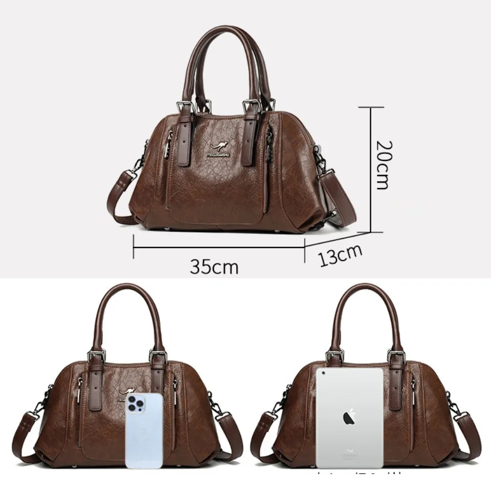 PU Leather Tote Bag For Women, Two Layer Casual Shoulder Crossbody With Zipper, Soft Interior Lining, Multiple Pockets