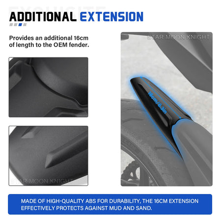 - Easy protection upgrade: install this ABS extender to improve mud clearance and rider confidence in wet or dirty conditions.