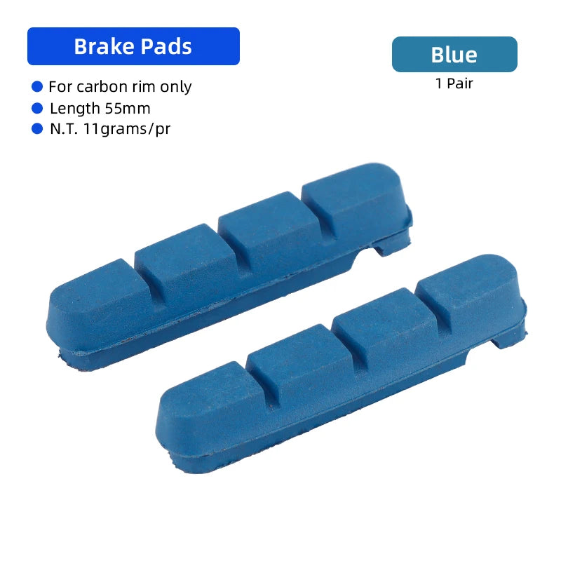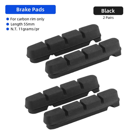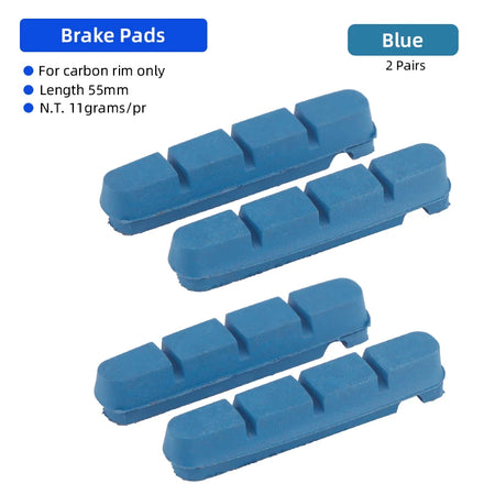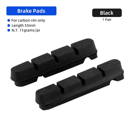 The pads feature grooves to sweep away dirt and mud, helping maintain strong braking in wet or dry conditions. With a 55mm length and compatibility with C-brake or V-brake systems, they’re a versatile choice for road, folding, and BMX bikes that rely on carbon rims.