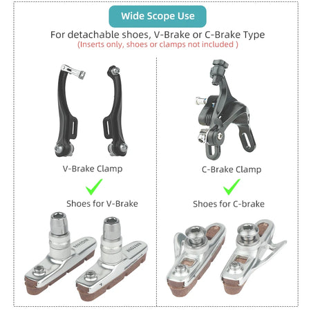 - Easy compatibility: Designed for C-brake or V-brake setups and carbon rims; ideal for road and folding bikes; check your caliper compatibility before installation.