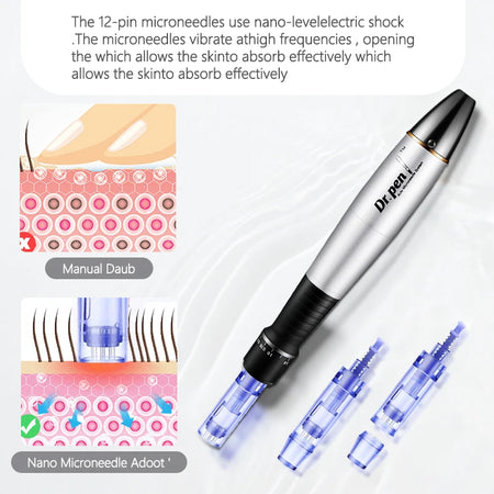 Introducing the Derma Pen A1 Micro Skin Pen by kemetvov — a compact, metal microneedle therapy system designed to smooth wrinkles and reduce the appearance of stretch marks. With microneedle length under 0.25 mm and a lightweight, electric handpiece, this device delivers fast, comfortable sessions compared to manual microneedling. Originating from Mainland China, it supports AU, UK, EU, and US power standards for versatile use.
