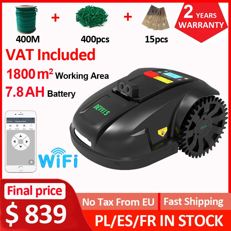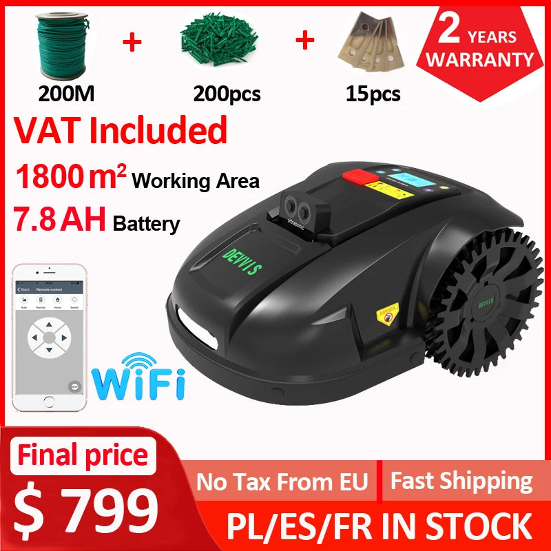 Devvis E1800U Ultrasound Robot Lawn Mower for 1800 m2 Area, 7.8Ah Battery