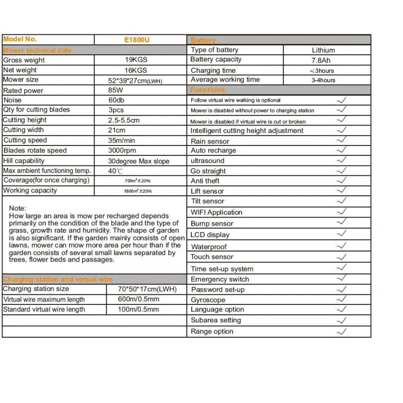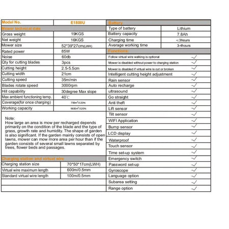 Meet the Devvis E1800U Ultrasound Robot Lawn Mower — the smart, hands-free way to mow lawns up to 1800 m2. Built for quiet, efficient operation, this mower combines a robust 7.8Ah lithium battery with a brushless motor and intelligent navigation to deliver a pristine lawn with minimal effort. It uses gyroscope navigation and ultrasonic obstacle avoidance to map and cut your grass precisely, while features like anti-theft, auto recharge, rain sensor, and smart scheduling keep it safe, reliable, and always ready to work. At less than 60 dB, it runs quietly in the background, so your outdoor time stays peaceful. All electronic and mechanical equipment, devices and machines sold by InterCyprus to EU countries are CE certified and carry a two year warranty. Language support: Yes. At intercyprus.com since 2002 — trusted for quality and reliability.