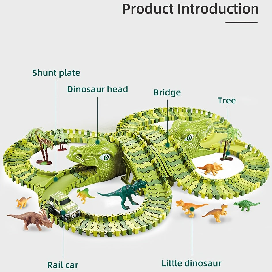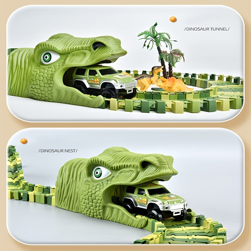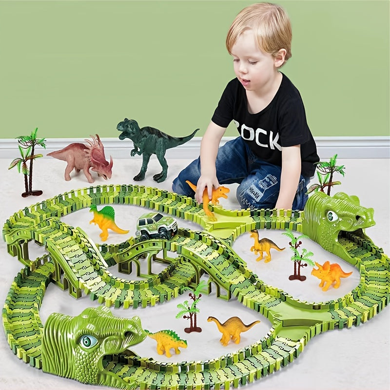- Let your little one's imagination run wild with the Dinosaur Toys Race Car Track Set