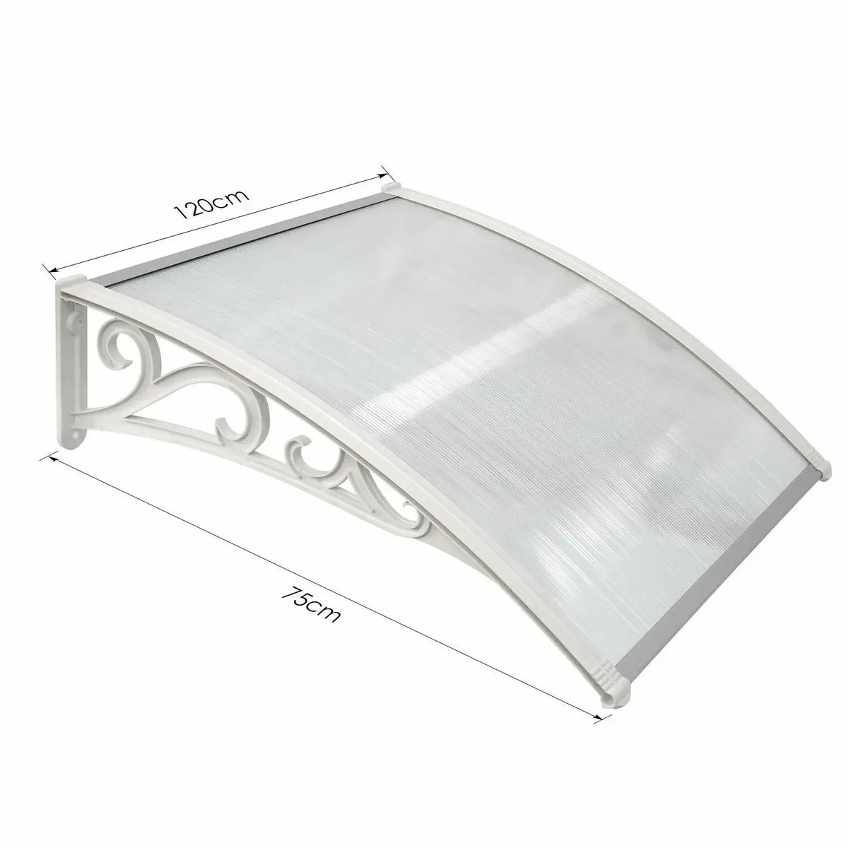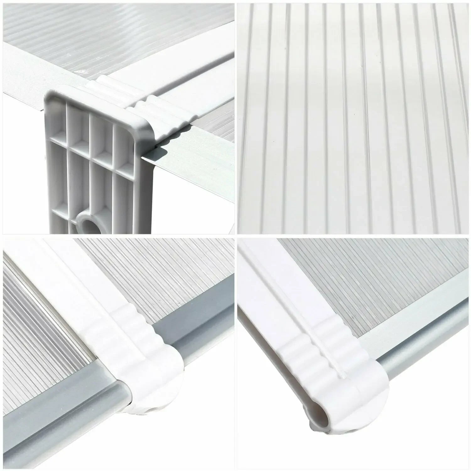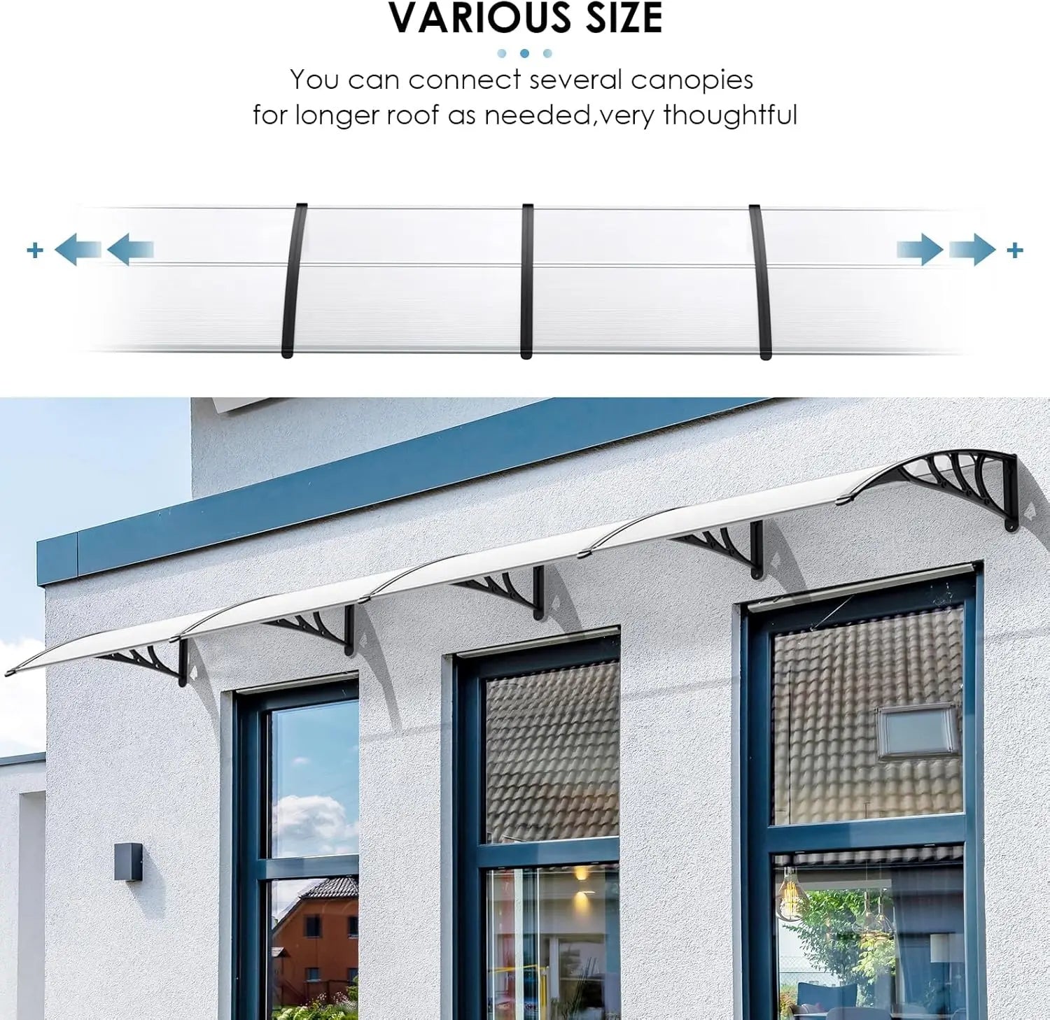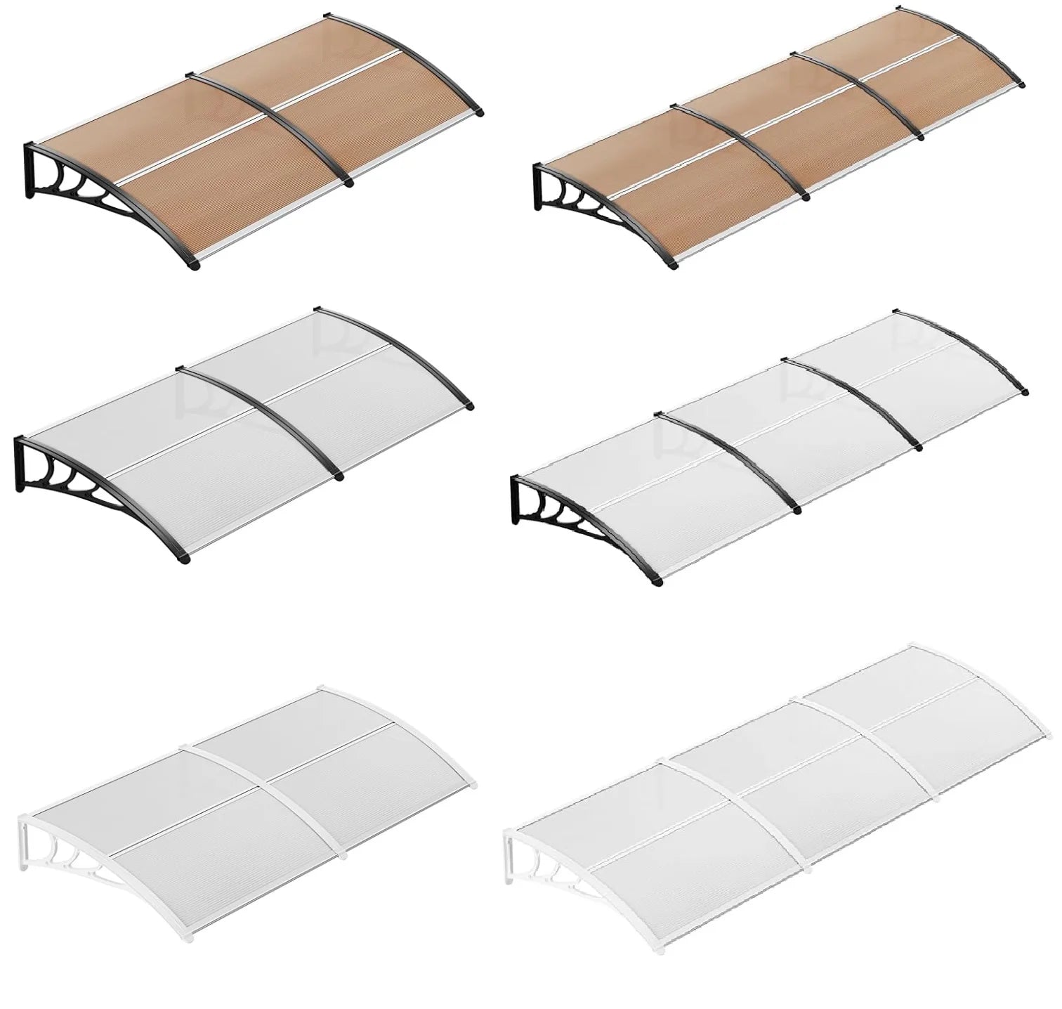 Protect entrances with a smart, stylish shield — the Door Rain Cover Sun Shade Awning Polycarbonate Canopy. Built to stand up to the elements, this clear canopy guards doors and windows from rain, snow, and dirt while letting daylight softly filter through. Its lightweight aluminum frame, durable polycarbonate panels, and PVC-coated sail material combine strength with a sleek, unobtrusive look that complements any doorway or storefront.