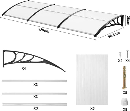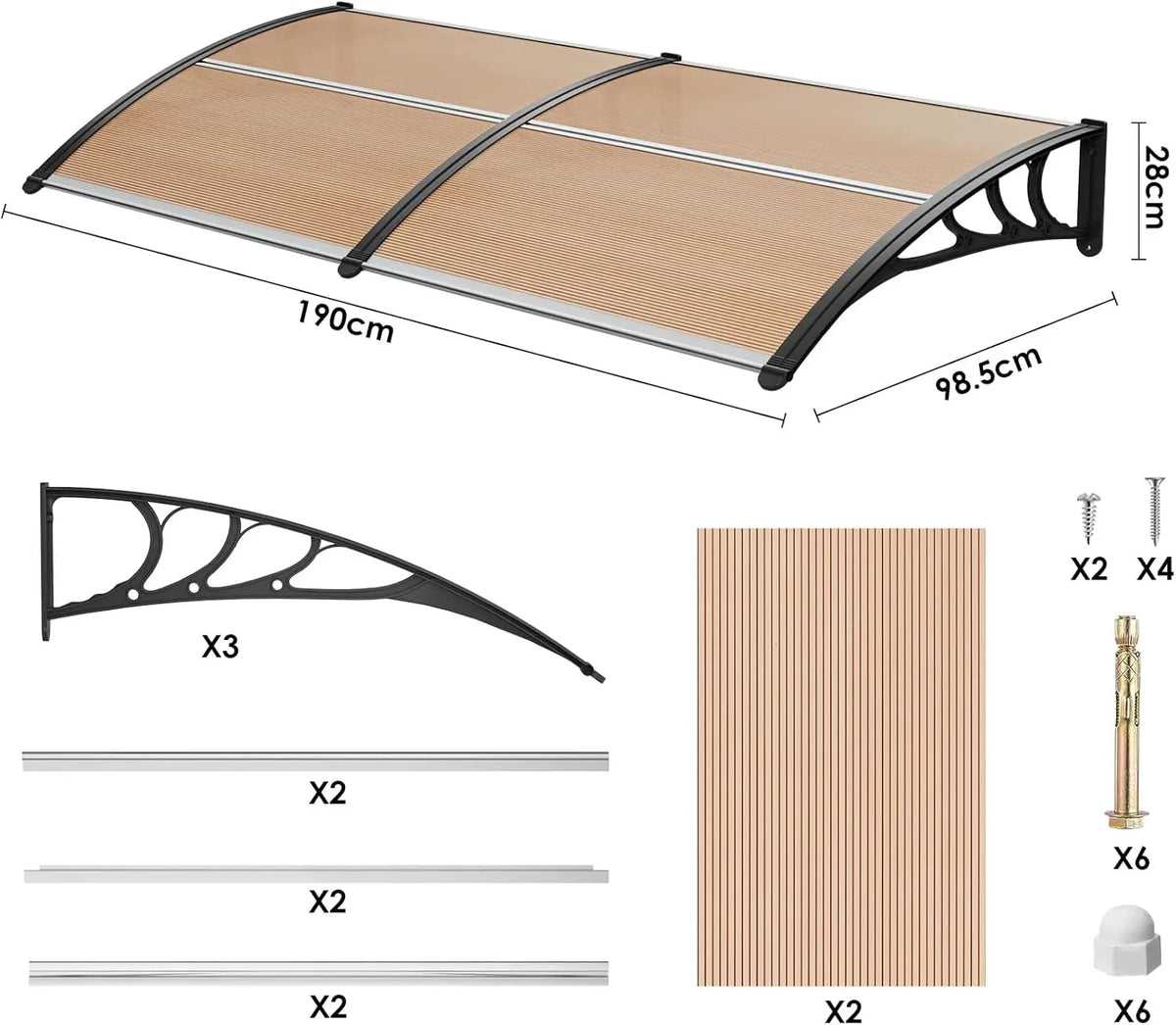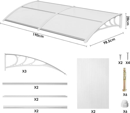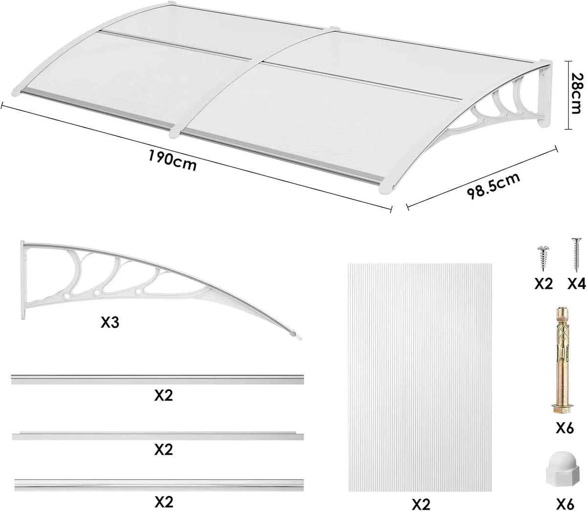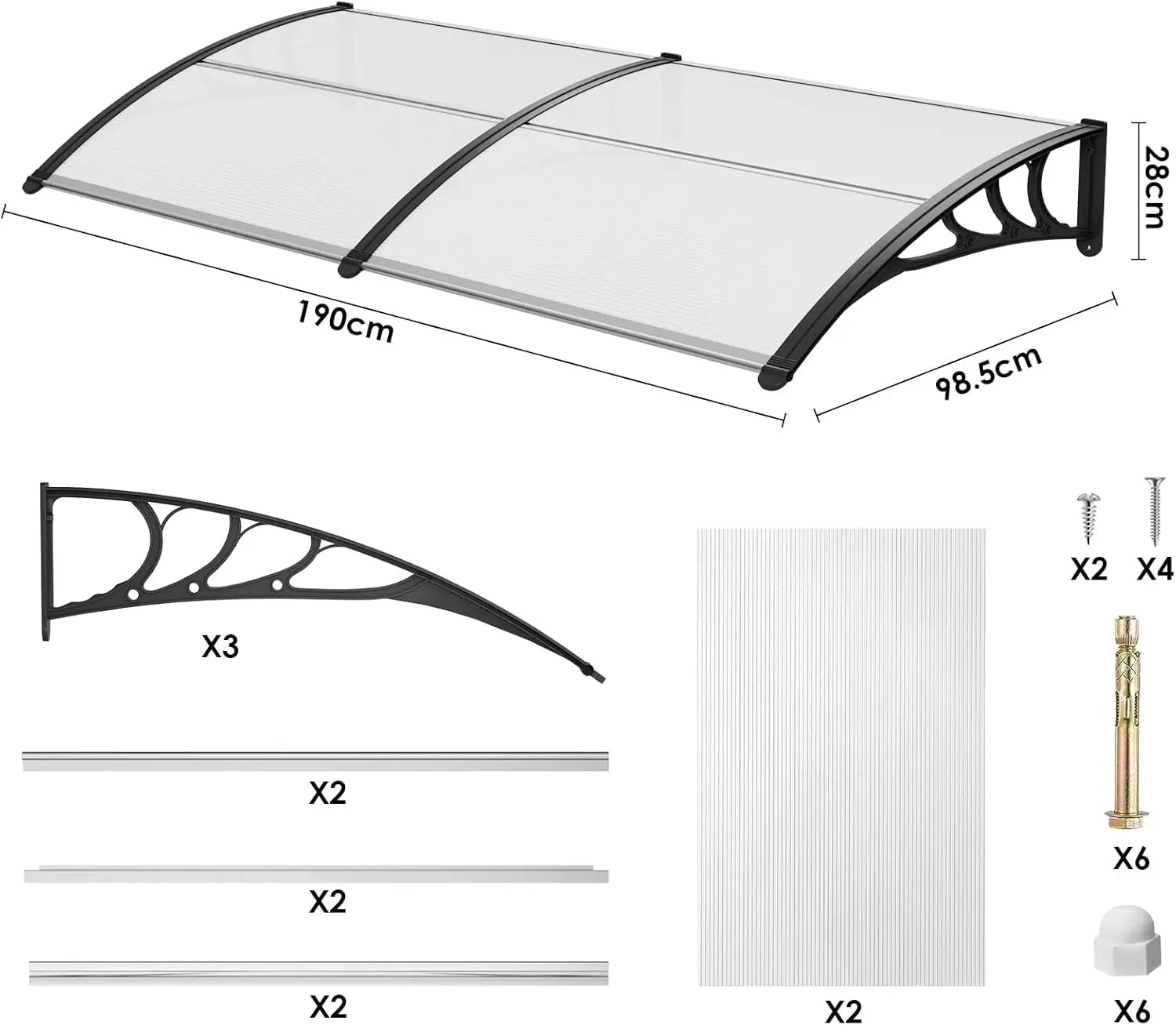 Protect entrances with a smart, stylish shield — the Door Rain Cover Sun Shade Awning Polycarbonate Canopy. Built to stand up to the elements, this clear canopy guards doors and windows from rain, snow, and dirt while letting daylight softly filter through. Its lightweight aluminum frame, durable polycarbonate panels, and PVC-coated sail material combine strength with a sleek, unobtrusive look that complements any doorway or storefront.