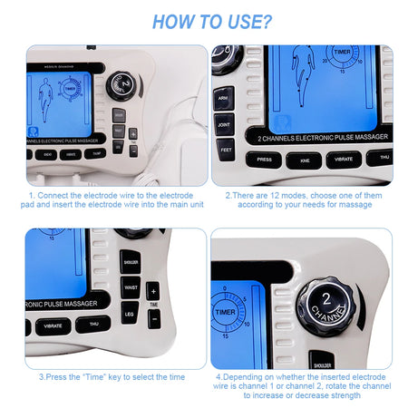 - The device offers two independent channels; if using both, ensure each channel’s pads are connected and can be adjusted separately.