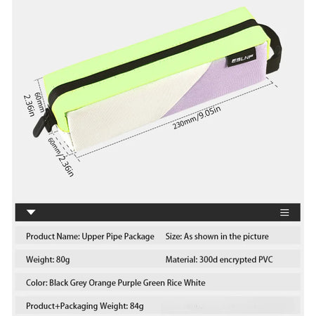 Meet the ESLNF Road Bike Top Tube Bag with Waterproof 300D PVC — a compact, rainproof storage solution that keeps your essentials within easy reach on road and mountain bikes. Designed for front beam mounting on the top tube, this bag protects your valuables from road spray and sudden showers while you ride. The 300D PVC material delivers reliable waterproofing and sturdy durability, so you can ride longer with less worry about weather or gear protection. The color-matching design ensures a clean, integrated look on a variety of bikes, making it a practical upgrade for any cycling setup.