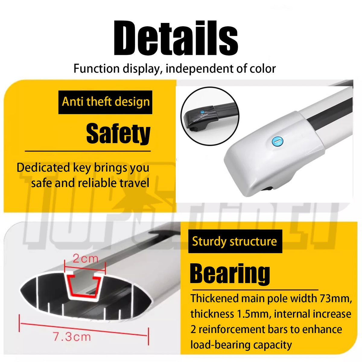 - Cross bars: Aluminum roof rack cross bars