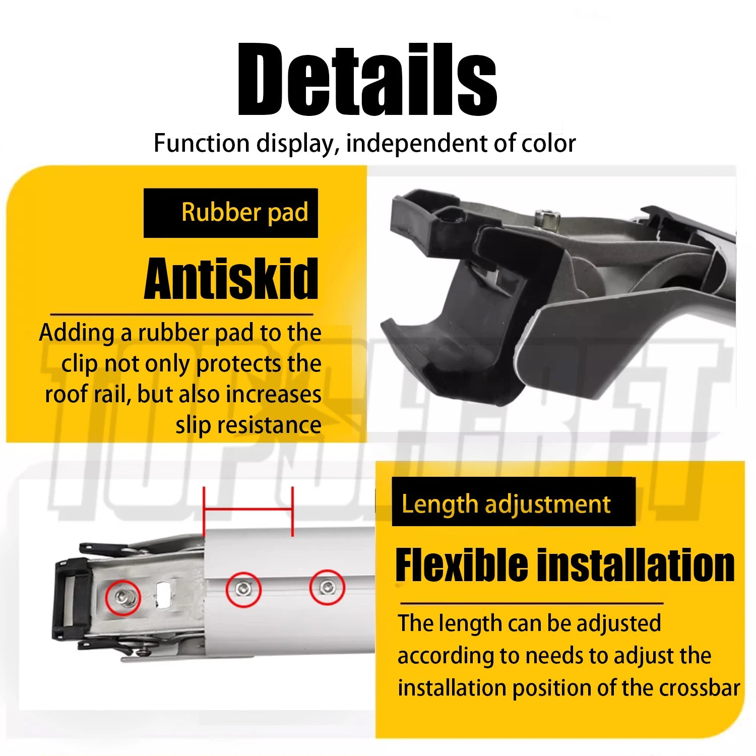 - Keep the aluminum cross bars clean and dry to maintain corrosion resistance for long-lasting performance.