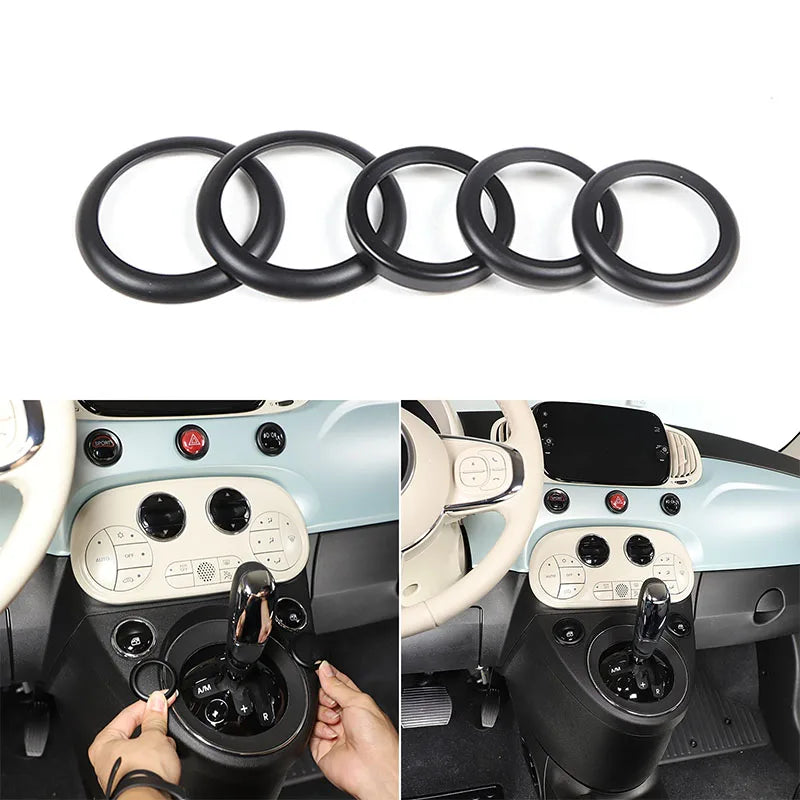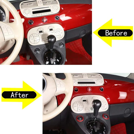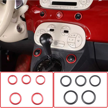 Enhance and protect the interior of your Fiat 500 with the Fiat 500 Aluminum Alloy Red Car Console Glass Lifter Circle. Expertly crafted from high-quality aluminum alloy in a striking red/black finish, this decorative circle adds a premium look to your center console while guarding against scratches and wear in high-traffic areas. Designed for 2010-2022 Fiat 500 Abarth models, it installs quickly with a strong double-sided automotive adhesive tape—no tools required.