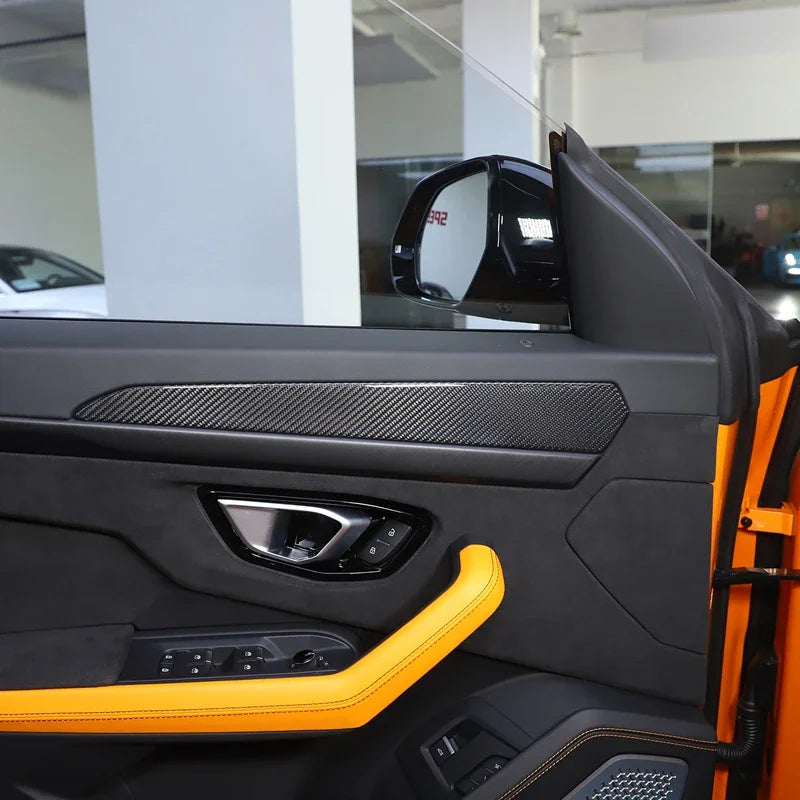 - Carbon fiber interior/exterior door panel decorative sticker for URUS (LHD) with automotive adhesive tape on the back.