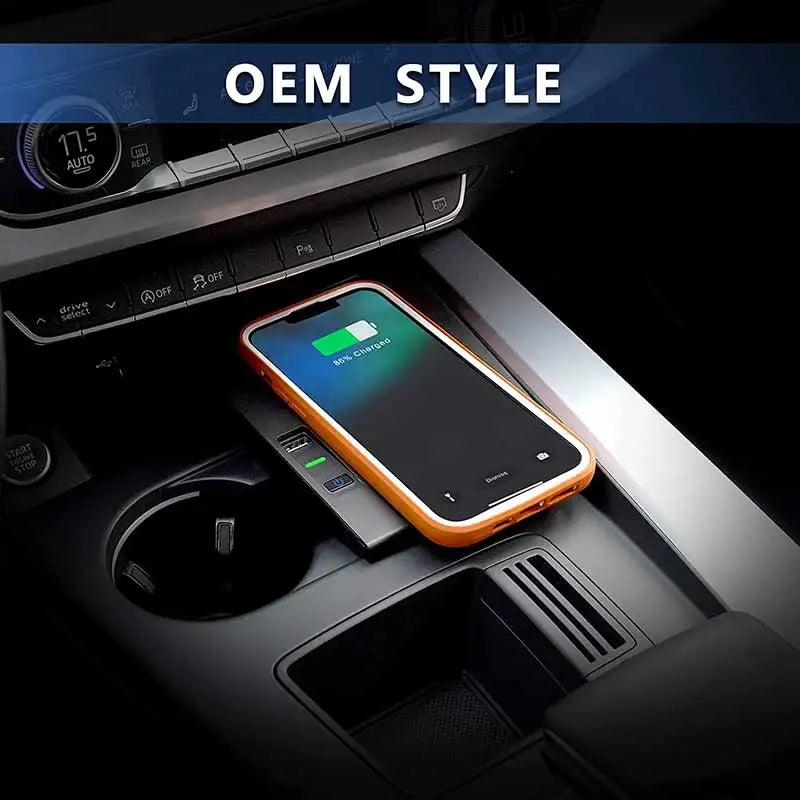 Upgrade your Audi cabin with the Audi Qi Wireless Car Charger, engineered to integrate as a seamless interior molding for A4, A5, S4, and S5 models from 2017 to 2023. This smart accessory blends wireless charging with a refined, factory-like finish, helping you keep your phone powered and within easy reach while you drive. Made from durable ABS+PC and built to ISO 9001 standards, it delivers reliable performance without clutter. With safe, non-toxic materials, this upgrade supports a clean, long-lasting enhancement to your vehicle’s interior.