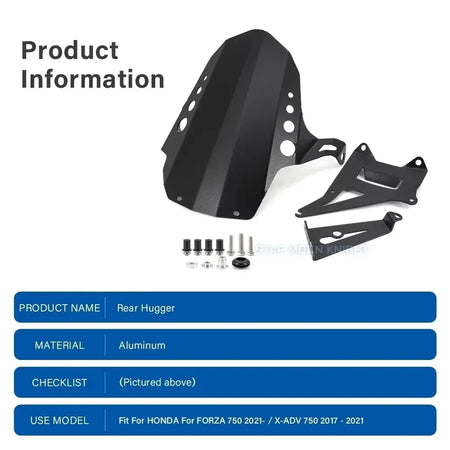 Honda Forza 750 X-ADV 750 Aluminum Rear Mudguard with Splash Protector, Durable Premium