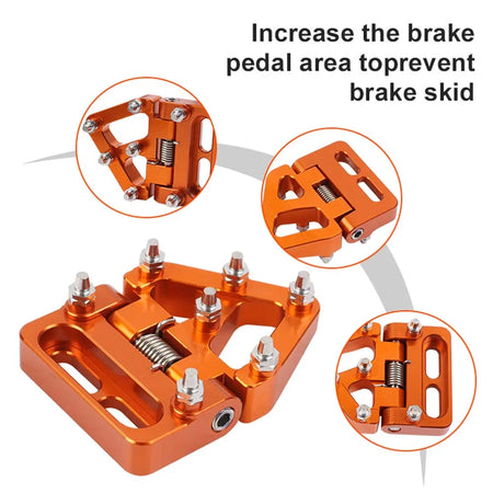 Upgrade your KTM adventure machine with the KTM 390 Adventure, 790 Adventure, 890 Adventure, 950, 990, 1050, 1090, 1190, 1290 Foldable Rear Brake Pedal Tip Plate. Crafted from premium 7075-T6 aluminum and CNC-machined with an durable anodized finish, this pedal combo delivers strong, lightweight performance for demanding off-road and on-road rides. The foldable design protects your bike when you hit rocks or rough terrain, reducing the risk of bending the pedal or damaging the engine case while you ride at speed or trail rough sections. The serrated surface with seven stainless teeth provides confident, anti-slip braking grip in wet or muddy conditions, helping you brake precisely when every second counts. With forward and backward adjustment, you can tailor braking reach for maximum comfort and control on both street and trail.