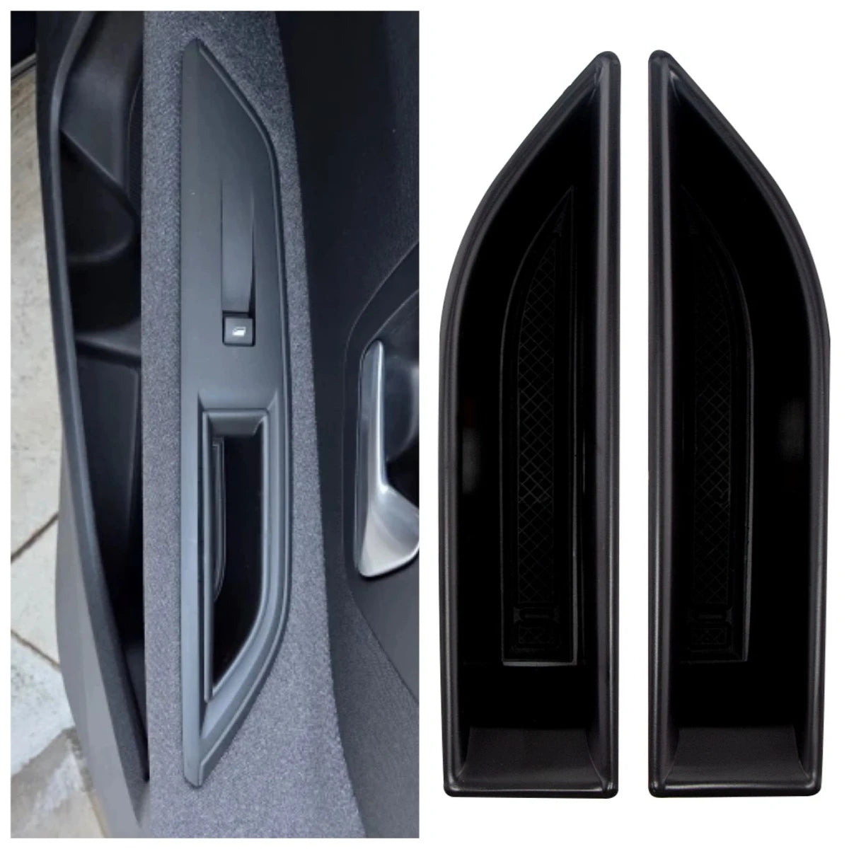 Installation isSnap-in simple—no tools required. Within a minute you’ll have a secure, organized space to stash cards, a phone, coins, or pocket money, keeping them from sliding around and getting scratched in the door pocket. The sleek black finish blends effortlessly with most interior colors, providing a tidy, unobtrusive upgrade to your car’s storage capability.
