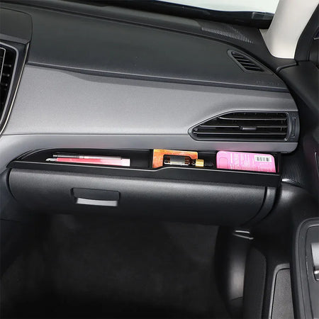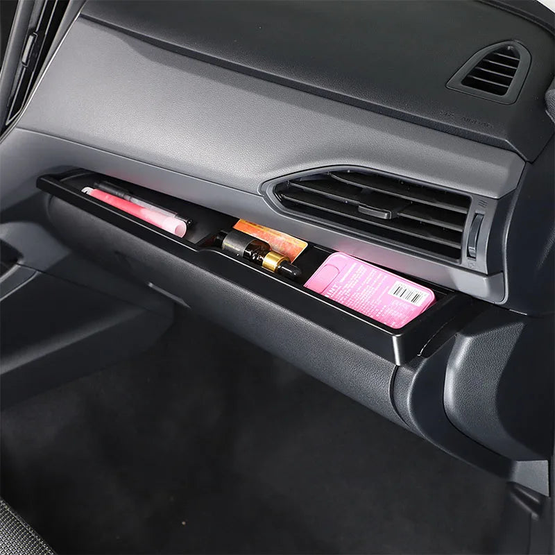 Upgrade your Subaru interior with the ABS Black Glove Box Organizer, designed specifically for Subaru WRX 2022-2025 (also compatible with Crosstrek 2022-2025). Crafted from high-quality ABS plastic, this sleek black interior moulding adds organized storage to your glove box without bulk. It’s a 100% brand-new accessory that blends seamlessly with your cabin and simplifies daily driving by keeping essentials within easy reach. Easy installation is possible thanks to a strong back-side double-sided adhesive, and the product is ISO9001 certified for quality.