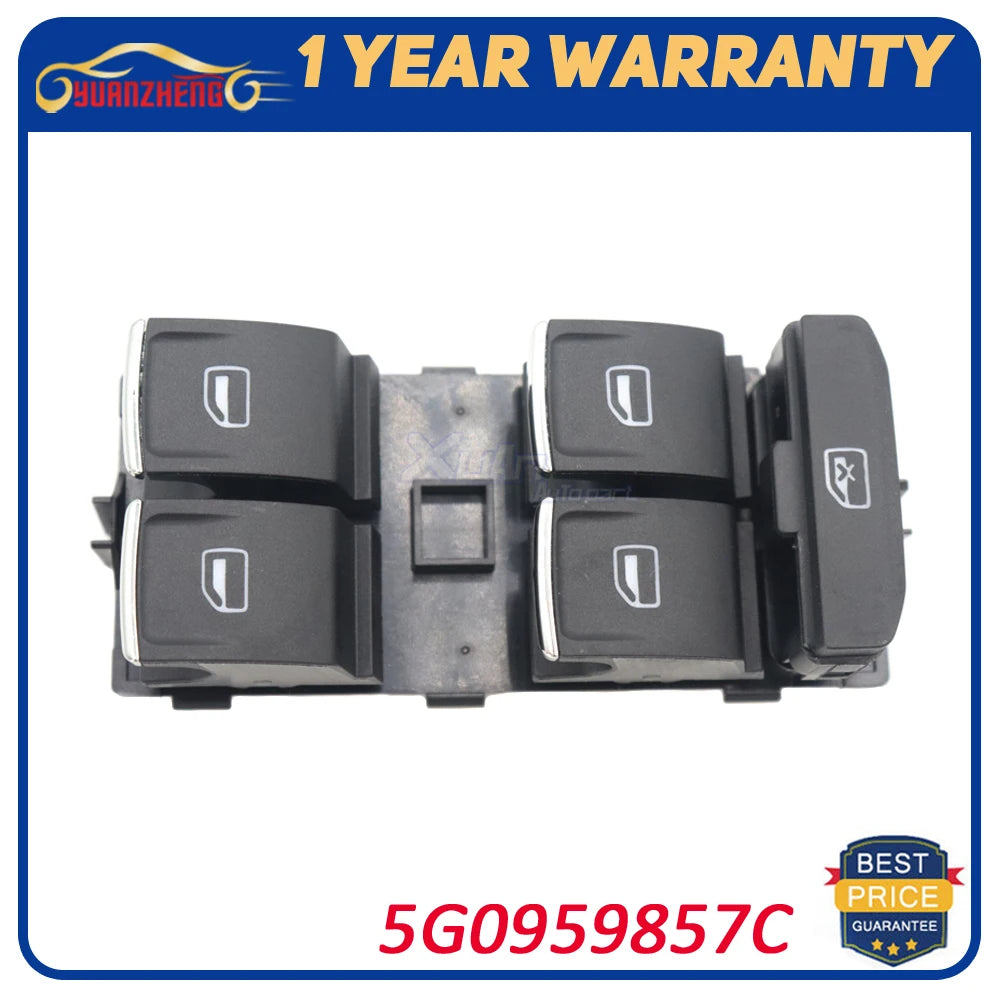 Restore precise window control in your Volkswagen with this Front Left Power Window Switch, crafted in durable plastic for long-lasting performance. This replacement part is designed to deliver smooth, reliable operation and a seamless factory feel, so you can enjoy easy one-touch up and down control again. It’s compatible with a wide range of VW models, including Arteon, Golf/Avant Mk7, Golf Sportsvan, Tiguan, Touran, T-Roc, Golf (2015–2017), and GTI (2015), making it a practical choice for single-car owners and fleets alike. The switch carries ISO 9000 testing standards, reflecting a commitment to consistent quality. OEM references such as 5G0959857C, 5G0 959 857 C, 5GM 867 255 A, 5GM867255A, 5G0 959 857E, 5G0 959 857 E, and 5G0959857E help ensure a precise fit and reliable compatibility with your vehicle’s electrical system. Crafted from durable plastic, this part blends with your cabin’s look while standing up to daily use.