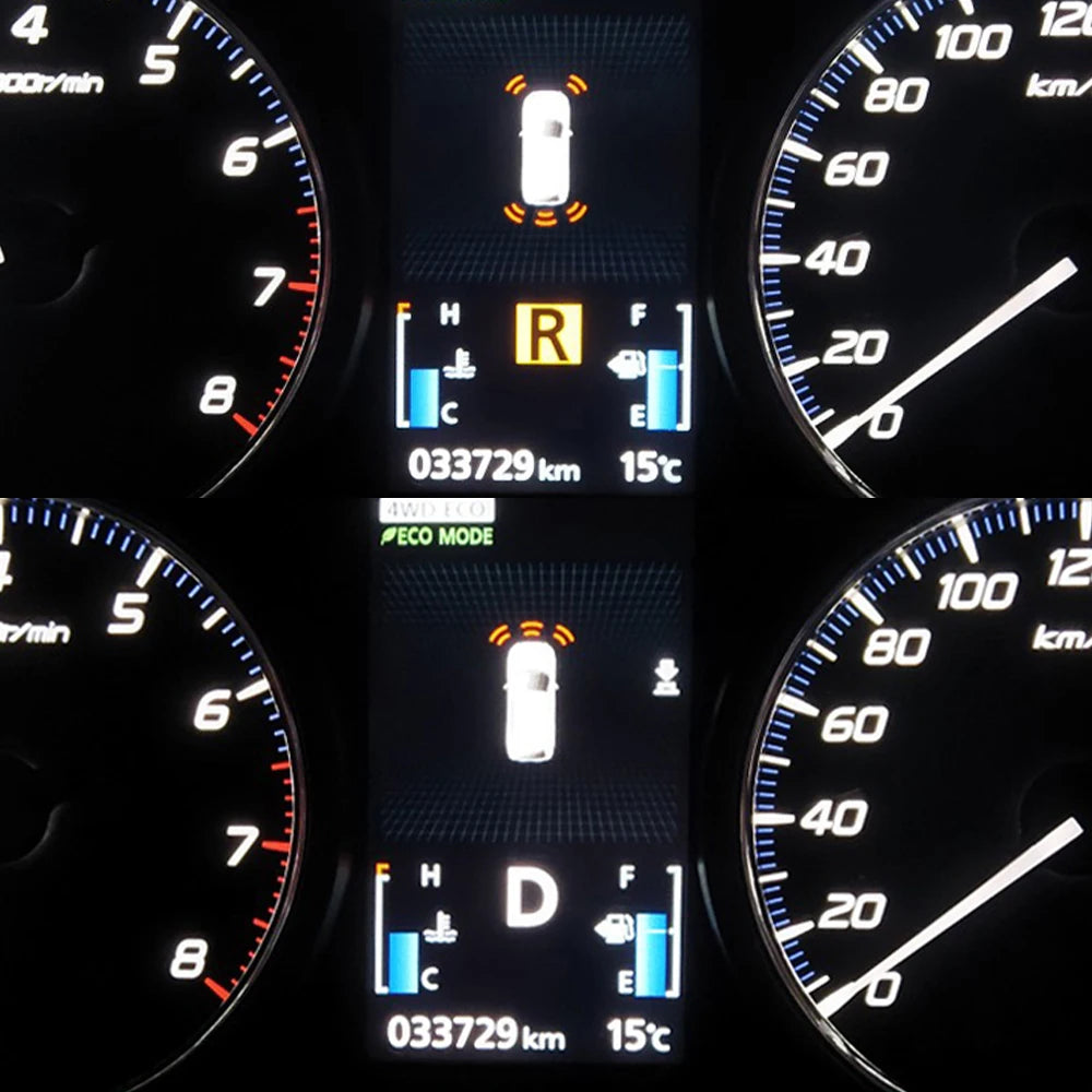 Enjoy smart, speed-aware performance: in Drive (D) gear, the front radar automatically activates when your speed falls below 15 km/h, and it turns off when you exceed that speed. In Reverse (R), the rear radar activates automatically, with dual front-sensor coverage and four rear-sensor coverage working in unison. The system’s IPX7 waterproof design and sealed structure keep it rugged through rain, wash, or road spray, while HD lenses deliver clearer obstacle visibility in all lighting conditions.