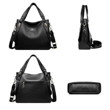 Genuine Soft Leather Top-Handle Bag for Women, Large Capacity Shoulder Crossbody Tote Messenger Bag