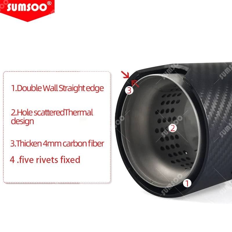 This product is a decorative upgrade (car accessory) designed to enhance appearance, not a performance-improving exhaust component. It provides an immediately noticeable enhancement to your car’s styling with a glossy carbon fiber finish and a sleek black-coated stainless steel inner for contrast and depth. Finish options are available to suit different styling preferences, including gloss black, matte black, gloss silver, and matte silver variants, while keeping the carbon fiber core for strength and a premium feel.