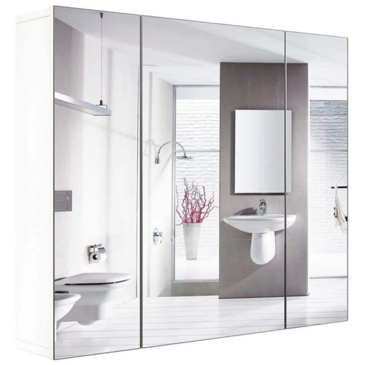 Discover the Getone White Wall Mounted Mirror Cabinet Three Glass Doors — a sleek, space-saving solution that blends a large reflective surface with practical bathroom storage. This modern cabinet helps you keep shampoos, gels, toothbrushes, and other essentials neatly organized behind a pristine, rimless mirror facade, reducing clutter and enhancing your daily routine.
