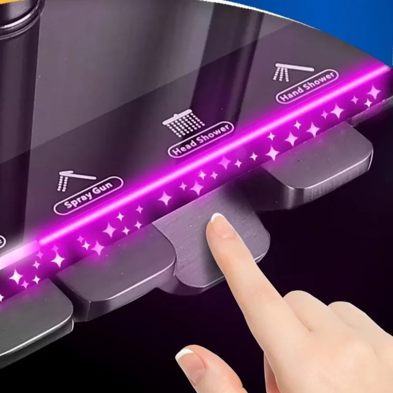 Smart Digital Display Rainfall Shower System with Four Function Wall Mounted Grey