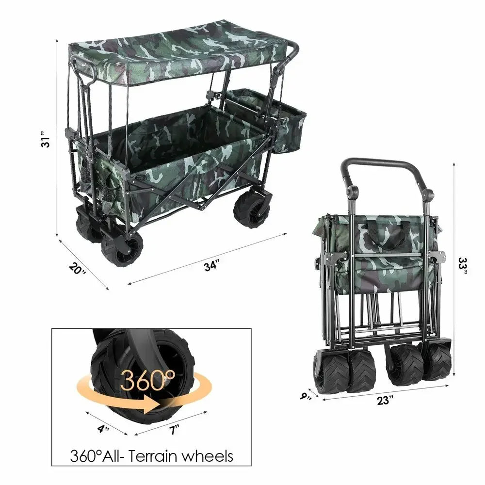 Foldable Handcart With Roof Off Road Brakes 115kg Capacity
