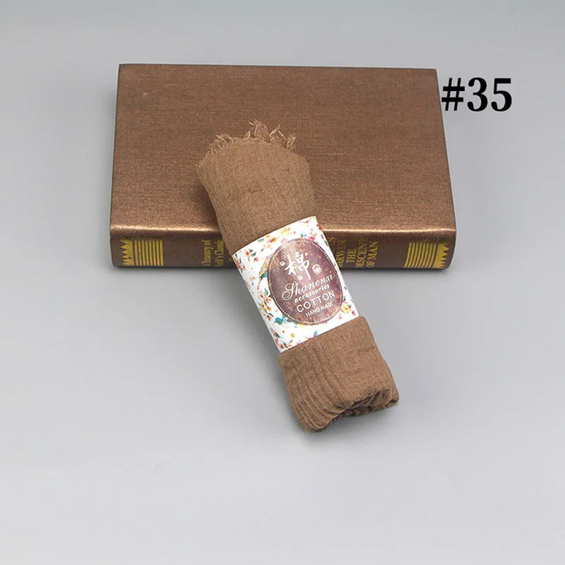 The HUISHI Scarf Muslim Women Bubble Cotton Solid Islam Muslim Head Scarf is designed to deliver ultimate style and comfort for any occasion. This versatile shawl and wrap is perfect for casual wear throughout the four seasons, making it an essential addition to your wardrobe. Available in 40 vibrant colors, including red, black, blue, and green, this scarf embodies elegance and functionality, appealing to fashion-forward women everywhere.