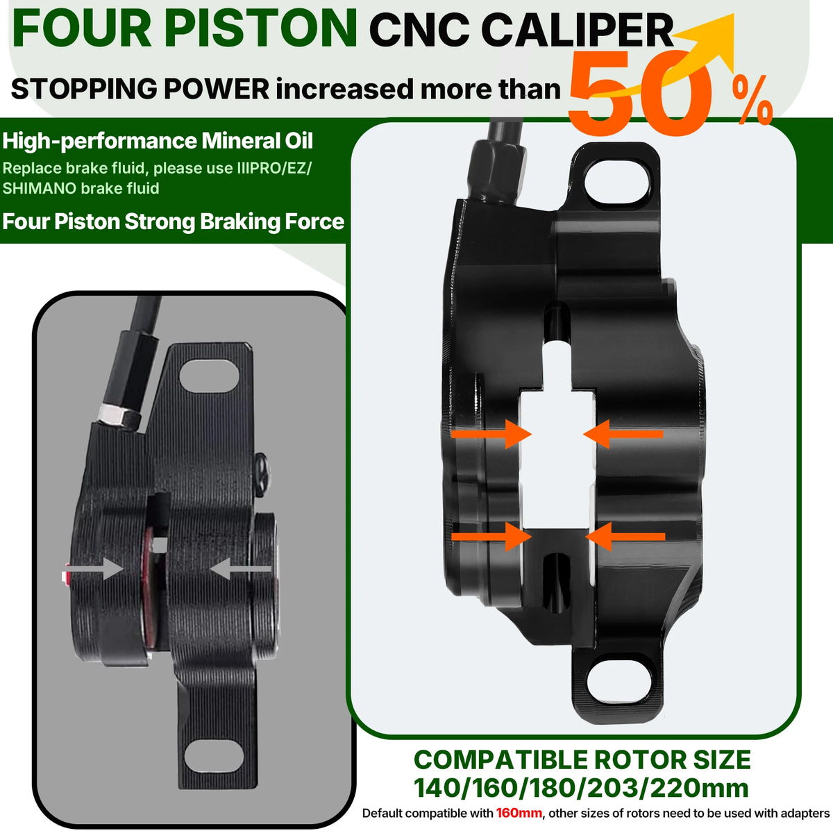 4-Piston MTB Hydraulic Disc Brake Set with 160mm A2 Floating Rotor, 6-Bolt