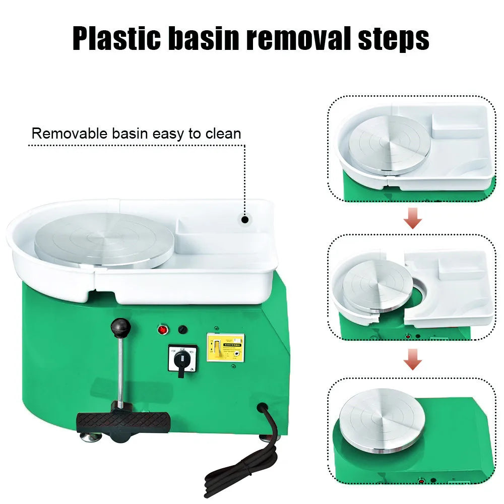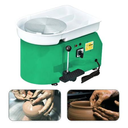 Meet the Jugacool Electric Pottery Wheel—a compact 25 cm throwing wheel designed for classroom use, studio corners, and home workshops. Powered by a 350W brushless motor, it delivers smooth, consistent speeds from 0 to 300 rpm. Control is hands-free with a foot pedal, and you can switch rotation direction for different shaping techniques. The CE-certified unit features a safe single-phase three-wire system with leakage protection and a quiet, low-noise operation. The body is finished with a sprayed plastic coating in vibrant colors, and the 25 cm plate provides ample space for small to medium work. An ABS removable basin makes cleanup quick, and included workflow adjustment tools help you refine your process. Suitable for throwing and forming, it's ideal for school teaching, pottery bars, and home studios.