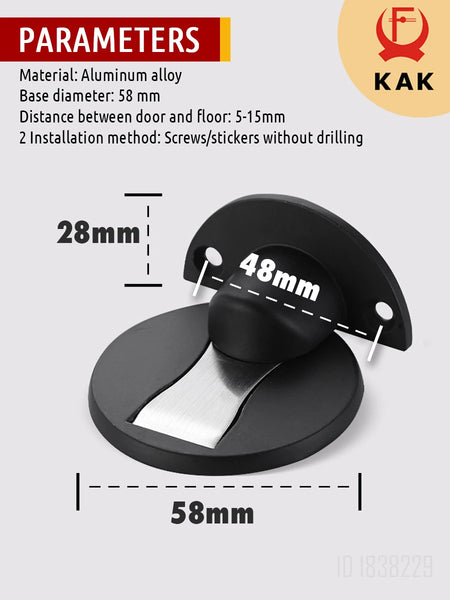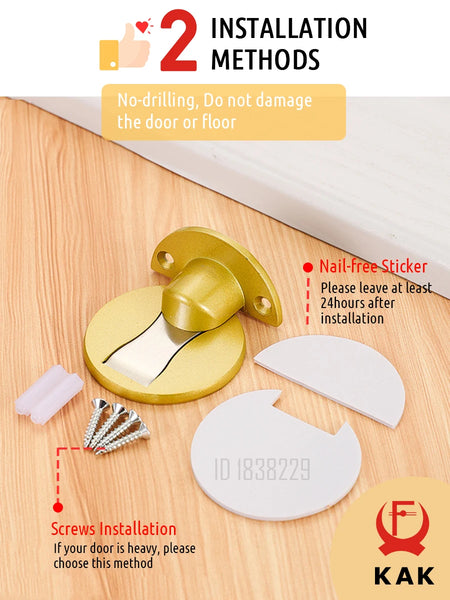 Discover the KAK 2Pcs Hidden Magnetic Door Stop Anti Collision Wall Guard—an ultra-low-profile solution crafted to protect walls and keep doors quietly in check. With a mere 6mm height, these invisible door stops sit flush with the floor, preventing scuffs and slams without getting in the way of daily cleaning or foot traffic. Made from durable aluminum alloy and available in Black, Silver, Gold, or Gray, they are built to resist rust, corrosion, and water exposure for long-lasting reliability.