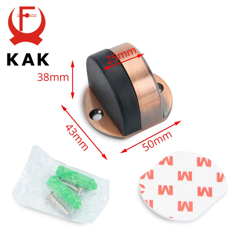 Discover the KAK Stainless Steel Door Stopper Waterproof Silent Holder — a robust, rust-resistant solution designed to keep doors from slamming while protecting your family and interior finishes. Crafted from 304 stainless steel, this heavy-duty door stop offers waterproof performance and silent operation, ensuring a calm, safe home or office environment. It fits doors with a seam distance within 38mm and installs either with non-punch stickers or traditional screws for flexible mounting. Available in finishes including Black, Silver, Gold, Green Bronze, Red Bronze, and White, and sized at 42mm x 50mm x 38mm to suit most door types. Model KAK-007, Origin: Mainland China.