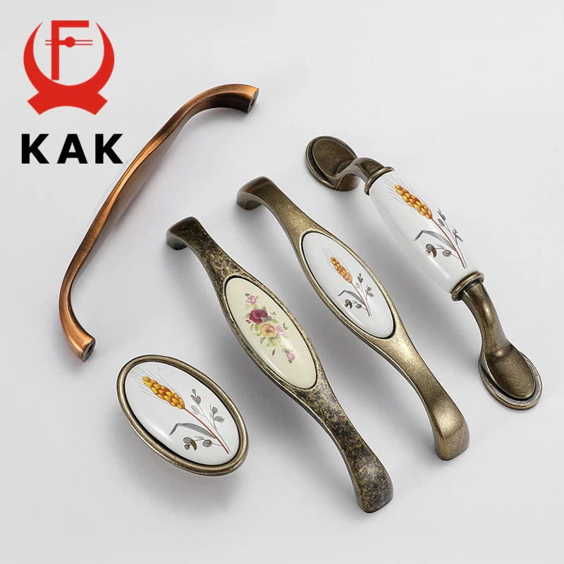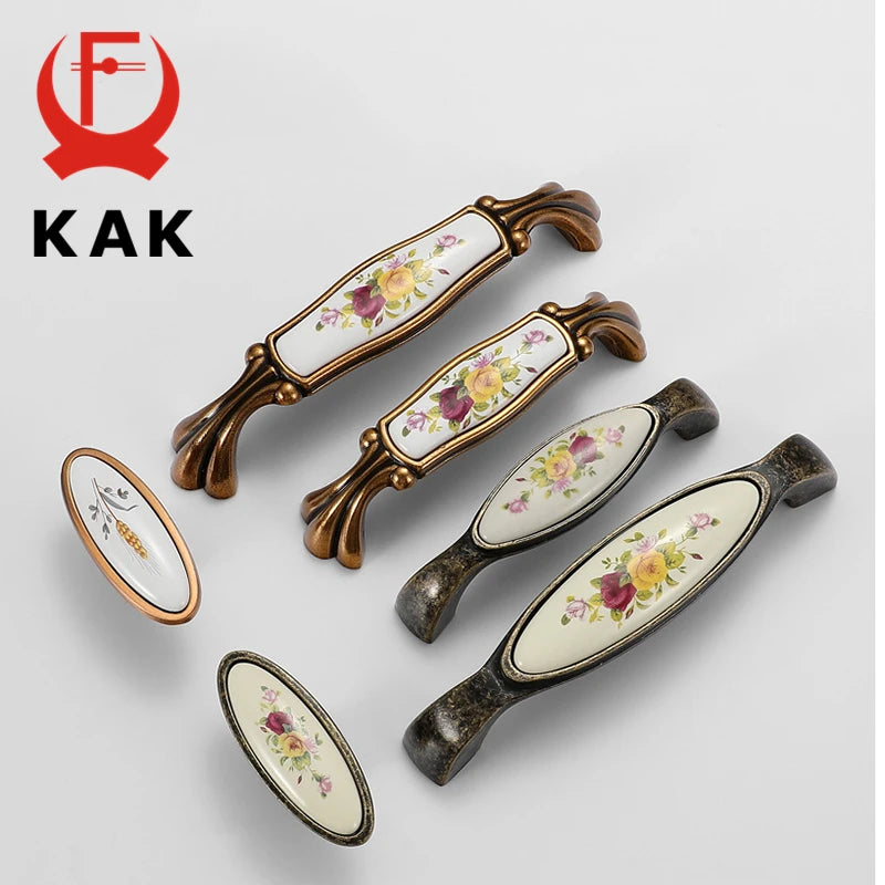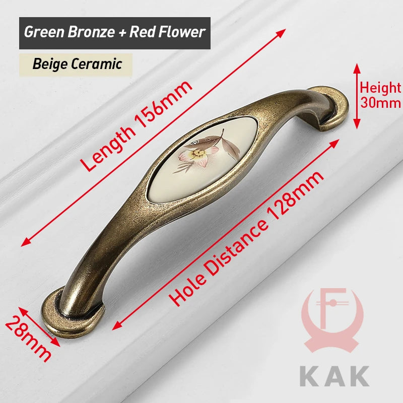 KAK Vintage Bronze Ceramic Cabinet Handles European Style