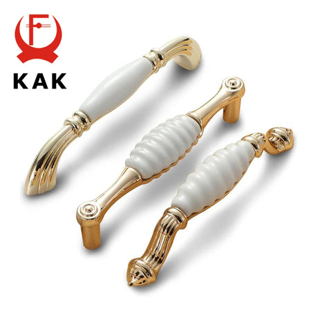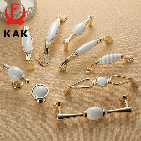 KAK White Ceramic Gold Cabinet Knobs and Drawer Pulls