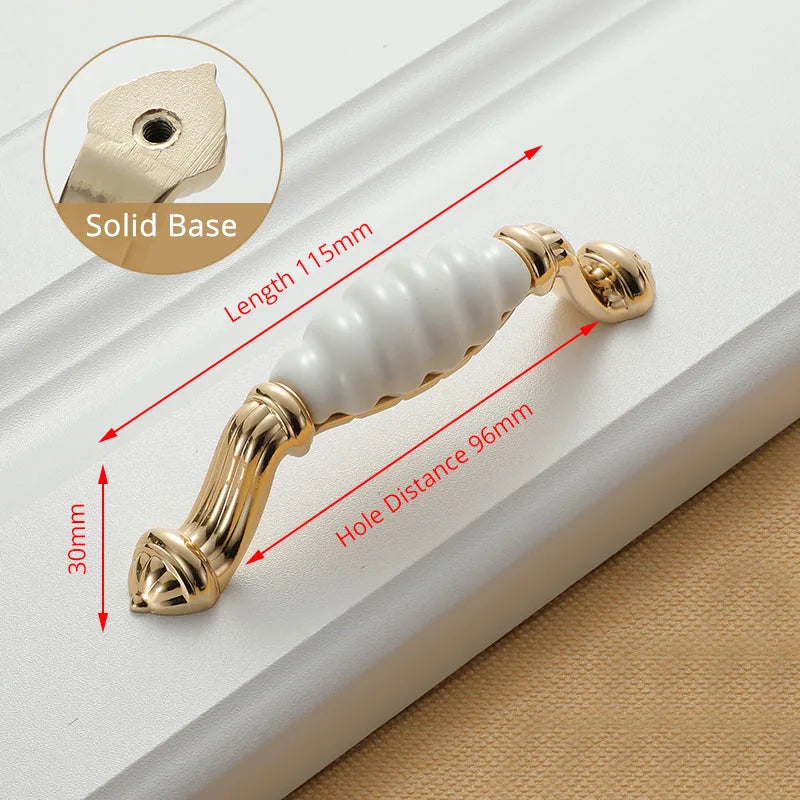These handles are designed to form a complete set with included screws, offering a convenient upgrade for kitchen cupboards, cabinets, doors, and drawers. The elegant gold and ceramic white combination complements a wide range of decor—from modern minimal to classic vintage—while providing a secure, comfortable grip for everyday use.